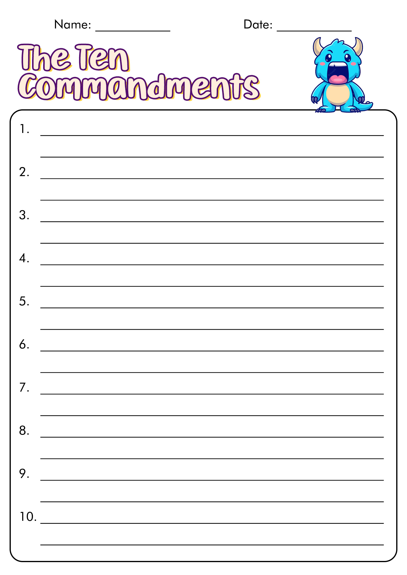 Parents should teach their children about God's rules since they are young to prepare them to be a human that follows His lights. However, like every learning progress, teaching something new to kids is not always fun and easy. Your children might find the list of the rules is just something they need to memorize when learning His rules means you need to understand them. You can try to give your children the simple terms of the rules so they can understand easily. You can download and use the Ten Commandments Blank Worksheets to familiarize your children with His principles. Below is a simple paraphrase of the ten laws from God: