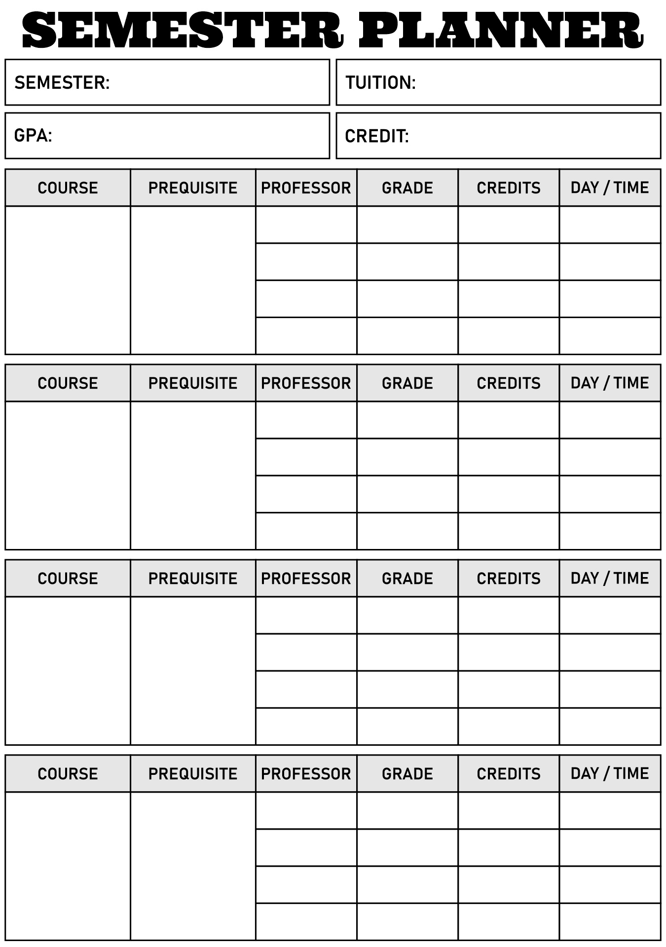 - Before you start using this worksheet, take the time to define your academic goals for the semester. What grades do you want to achieve? Which subjects should you prioritize in your studies? Setting clear and specific goals will help you create a more effective plan.