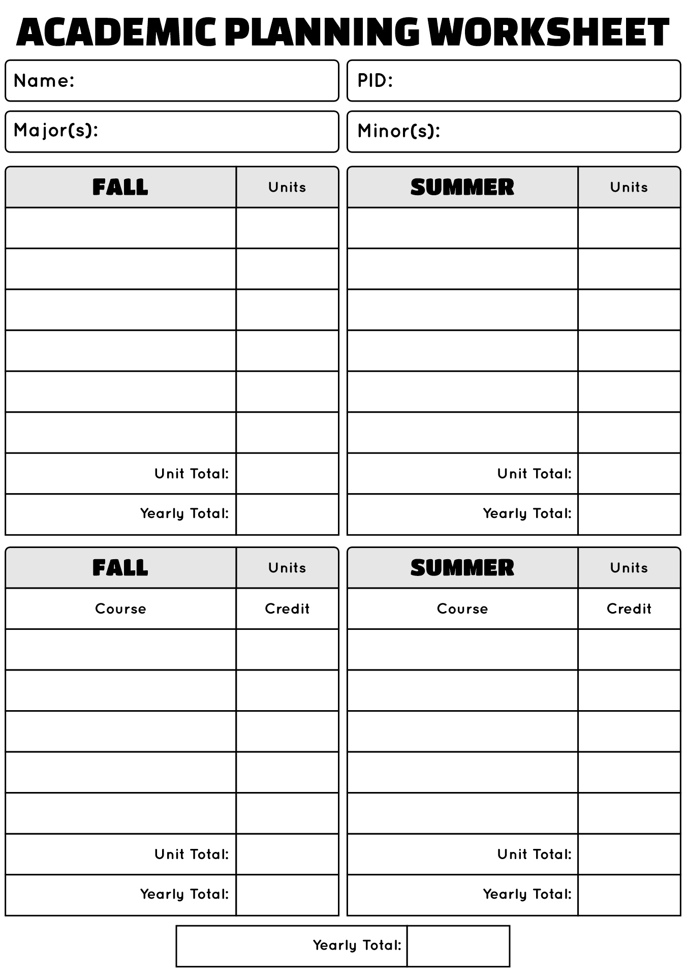 Begin mapping out your educational path with our easy-to-use academic plan worksheet!