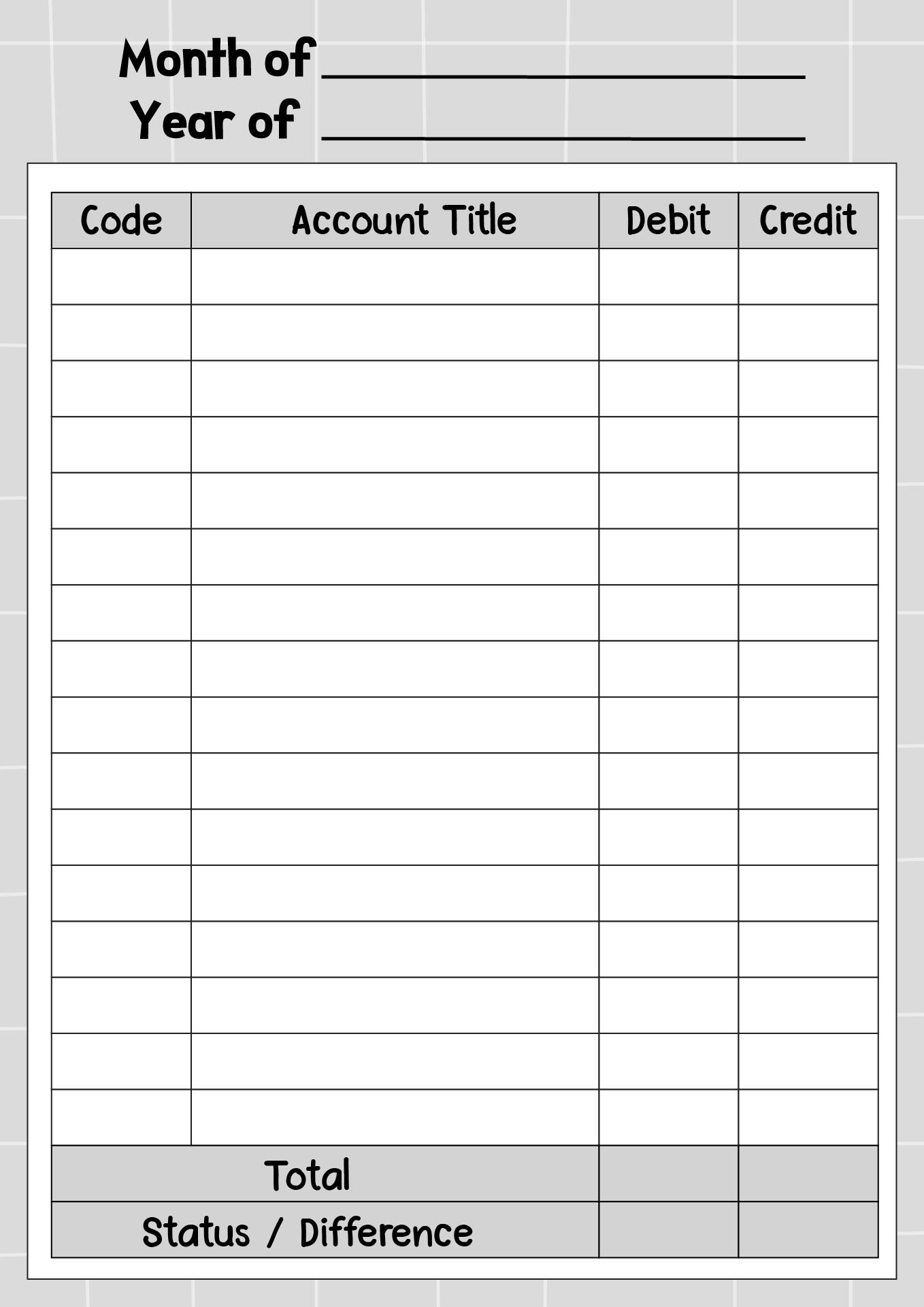 - Monthly Trial Balance Worksheet for Accounting