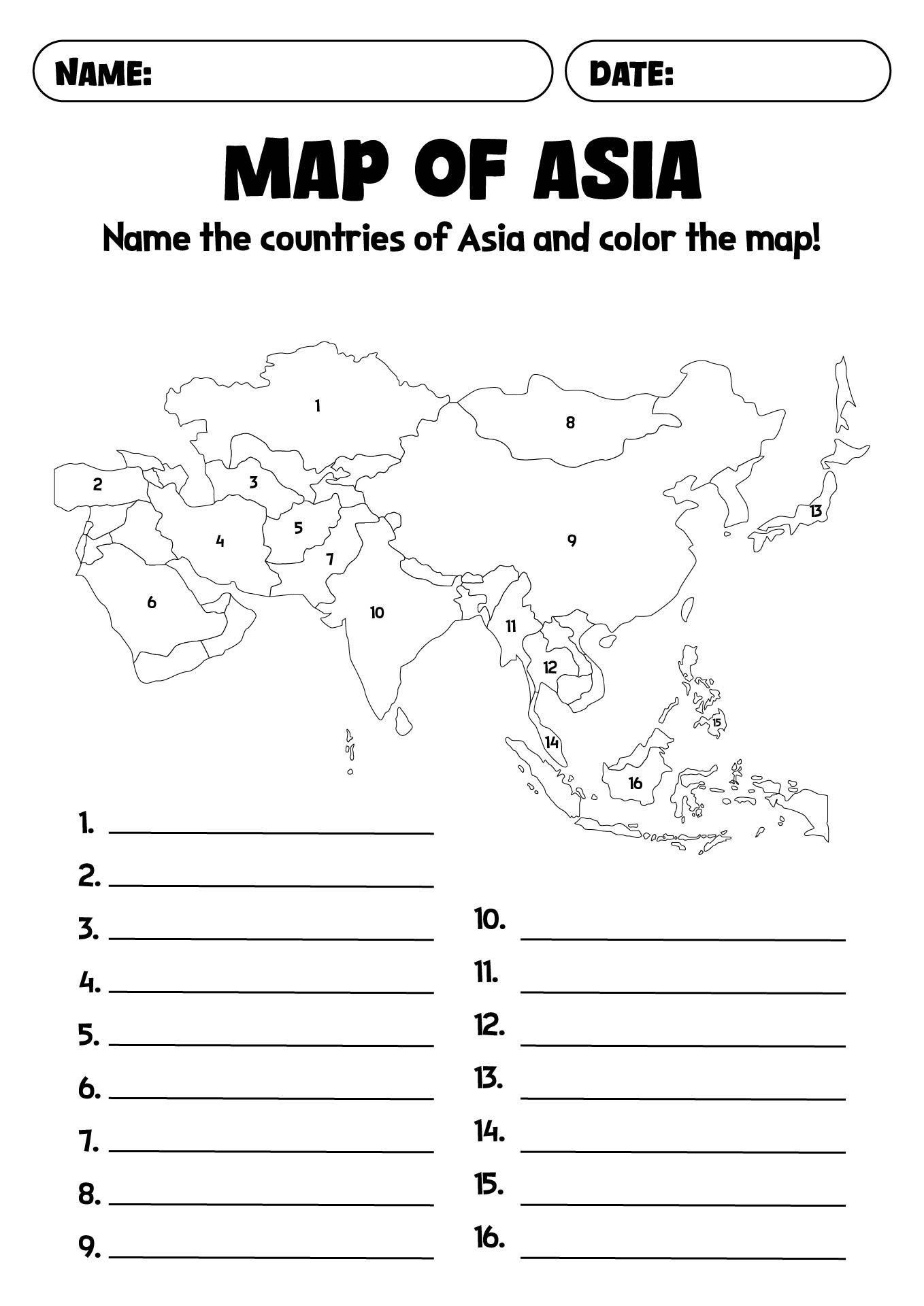 - Asia Map Quiz Printable