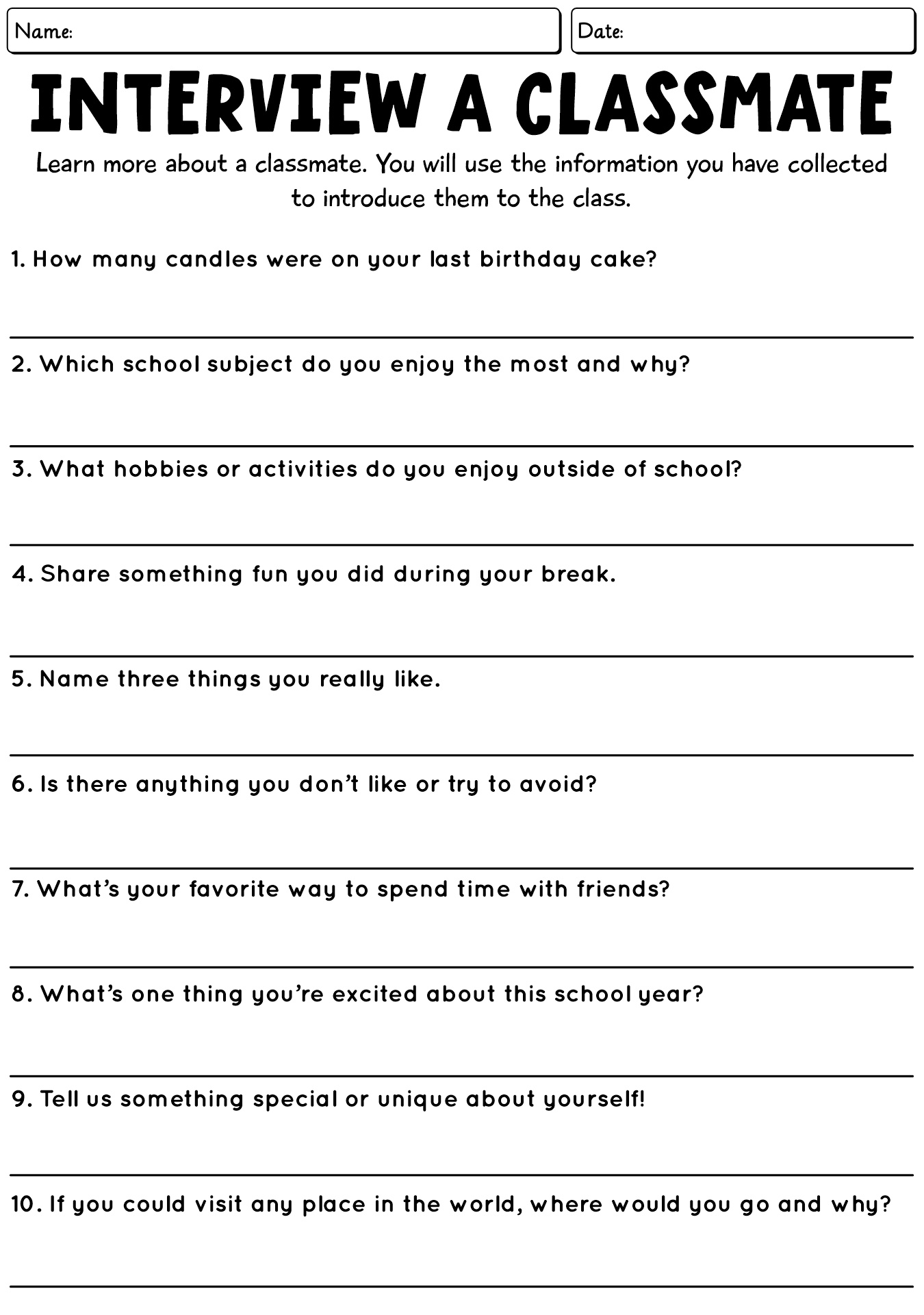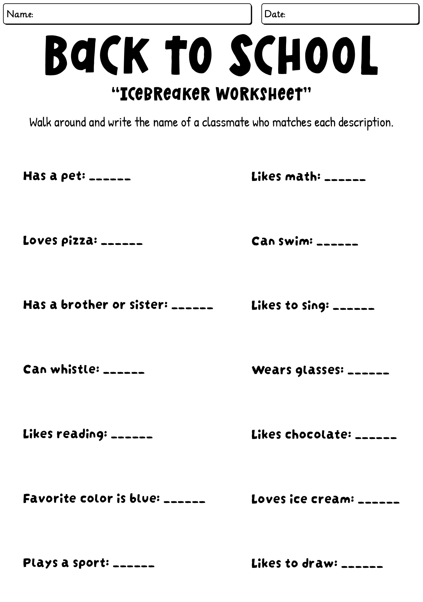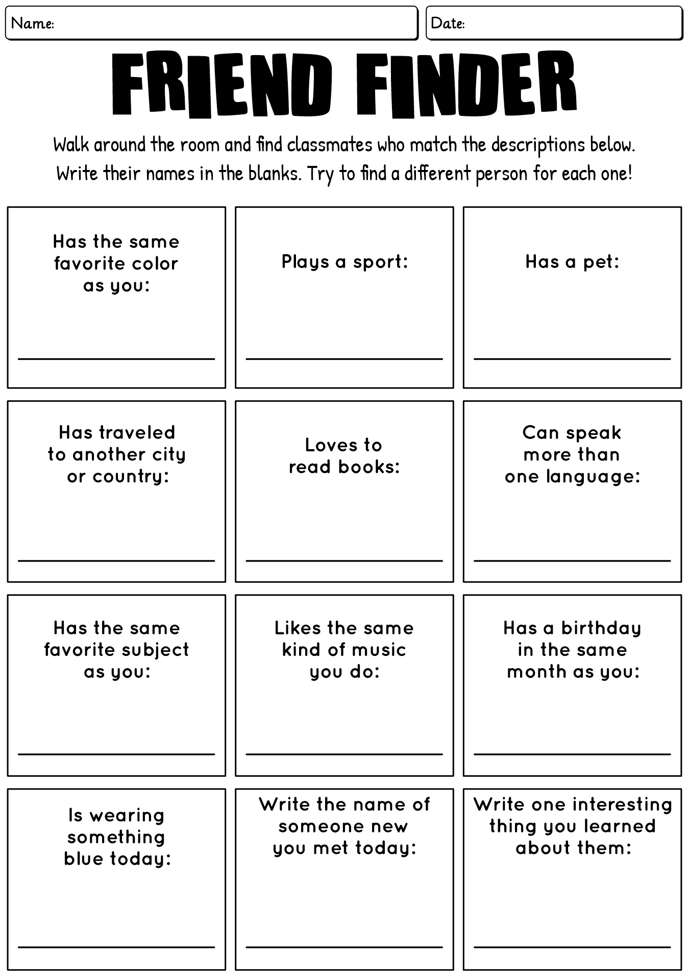 - Building Relationships: By sharing personal information on the worksheet, students can begin to form connections with their classmates based on common interests or experiences.