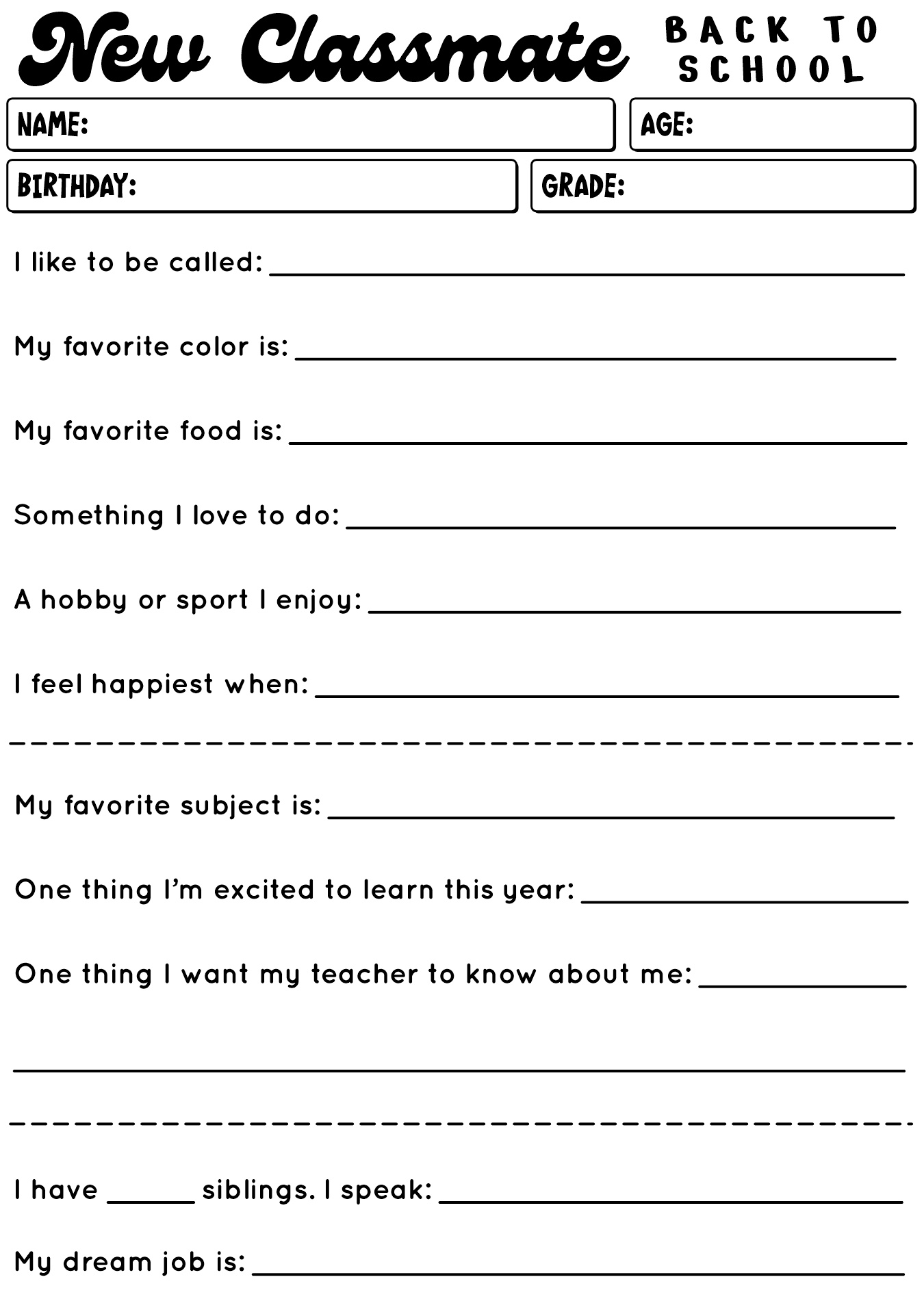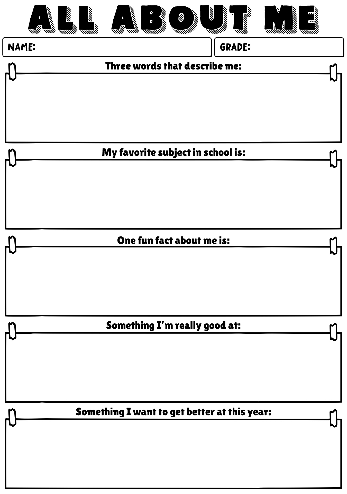 - High School Students (9th to 12th Grade): For high school students, consider including questions about their future plans, career aspirations, and extracurricular activities. Provide space for detailed responses and allow them to share personal anecdotes or experiences that have shaped who they are.