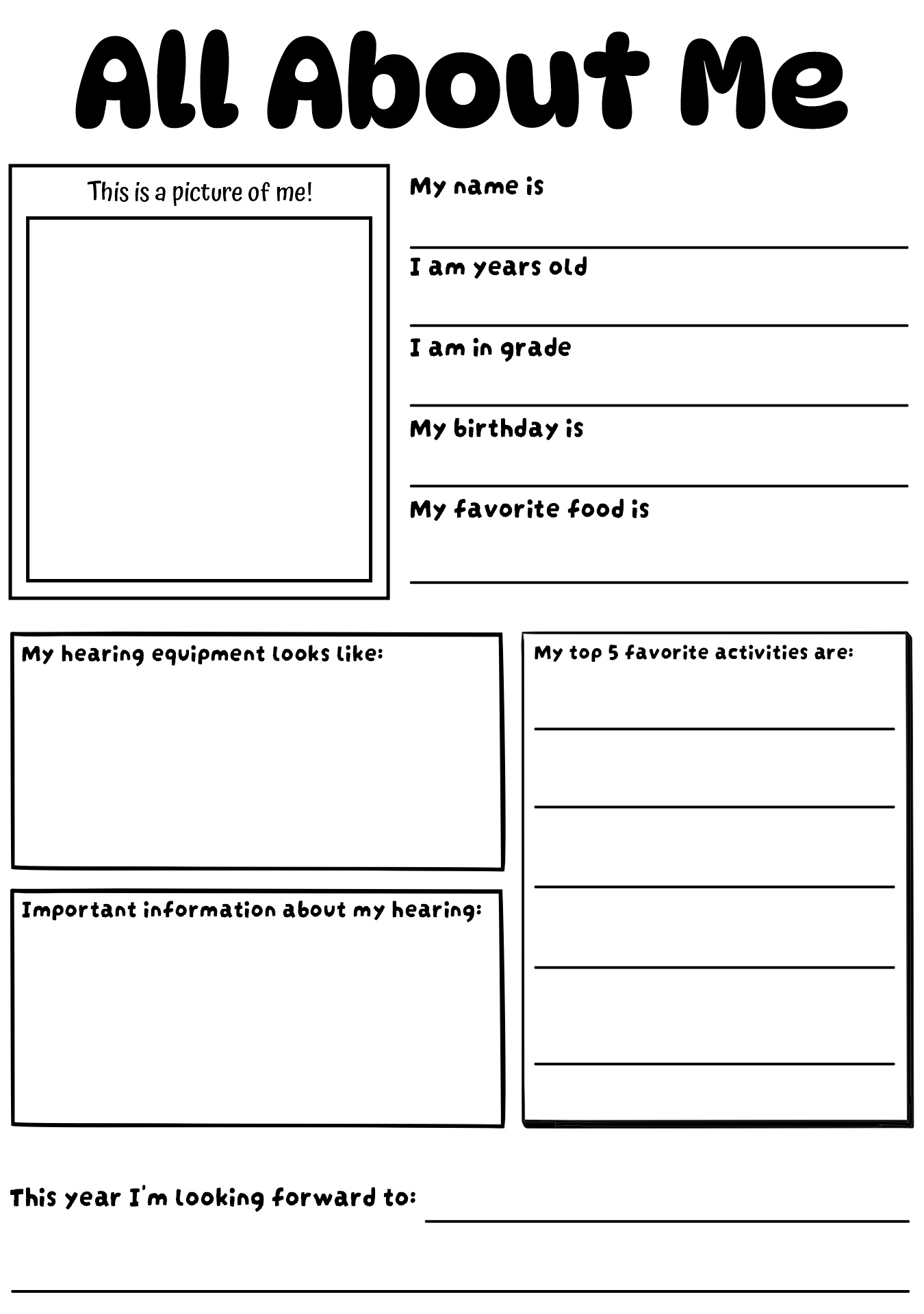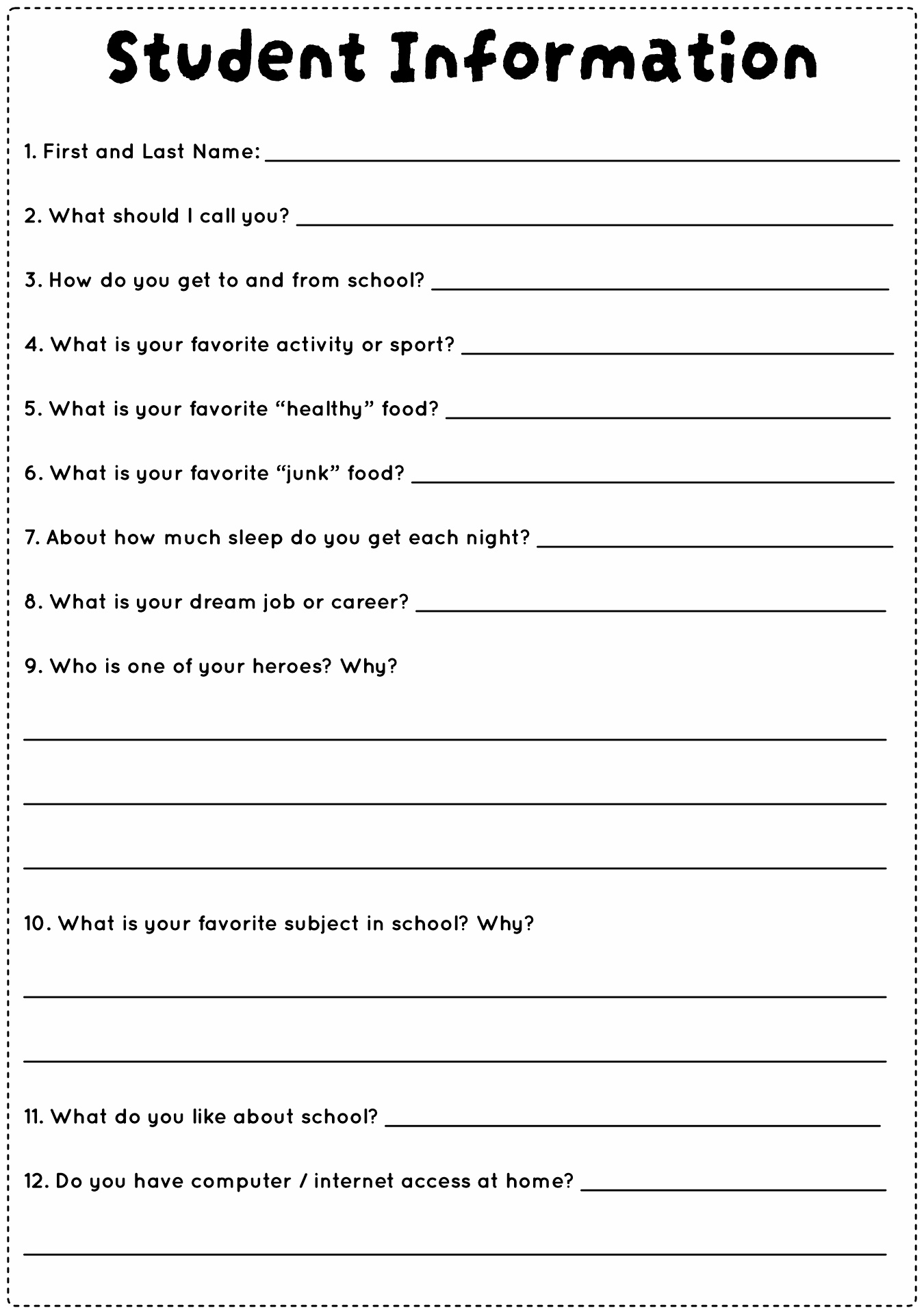 - Younger Students (Pre-K to 2nd Grade): For younger students, it is important to use simple language and engaging visuals. Consider including questions about favorite colors, animals, and hobbies. Use large, colorful fonts and space for drawing or coloring. Encourage students to share about their family, pets, and favorite activities.