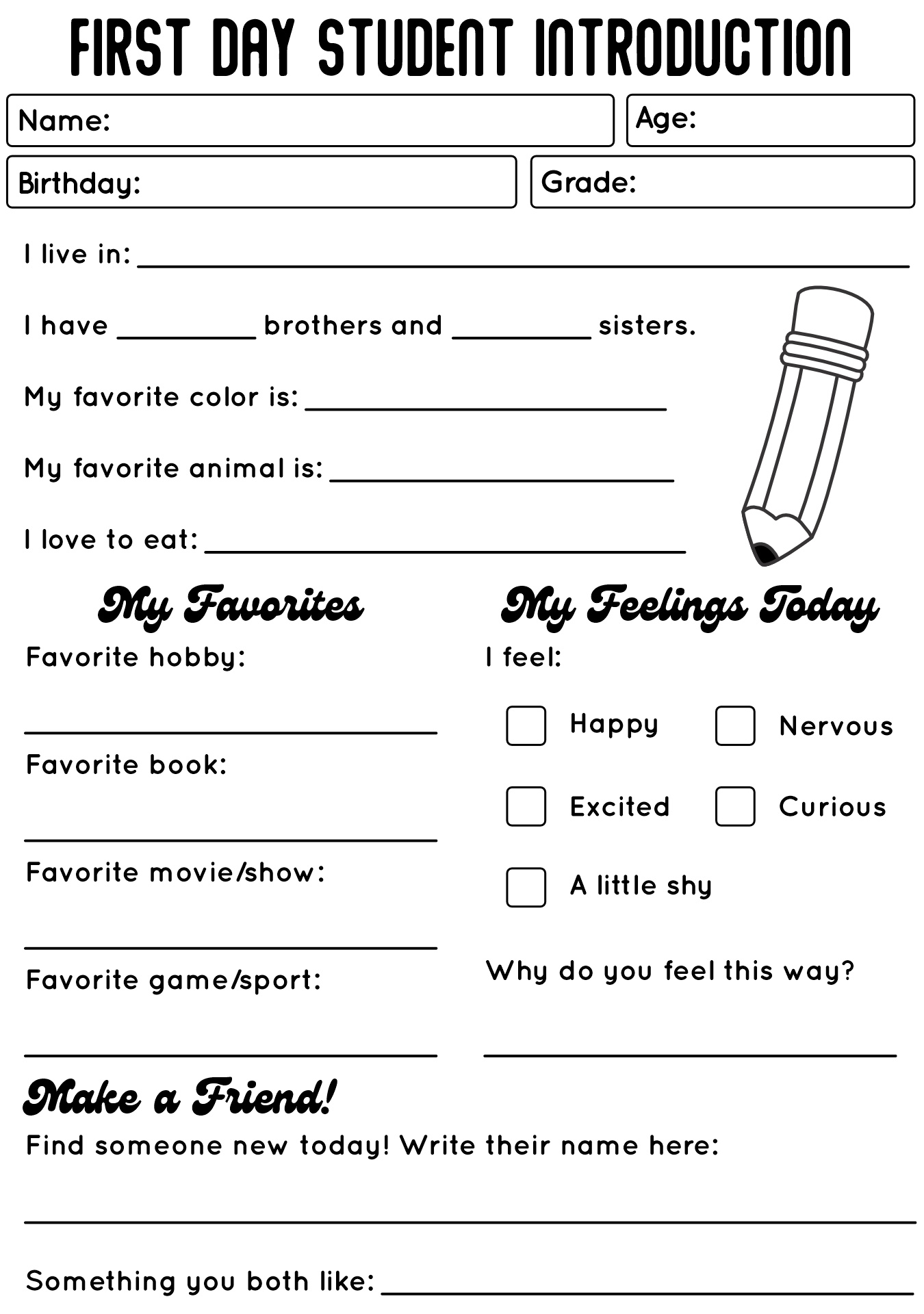 Whether you teach preschool or upper grades, taking time to understand your students can make a big impact. So, start the year strong by including a get-to-know-you worksheet in your first day plans! It’s an easy step toward stronger classroom relationships.