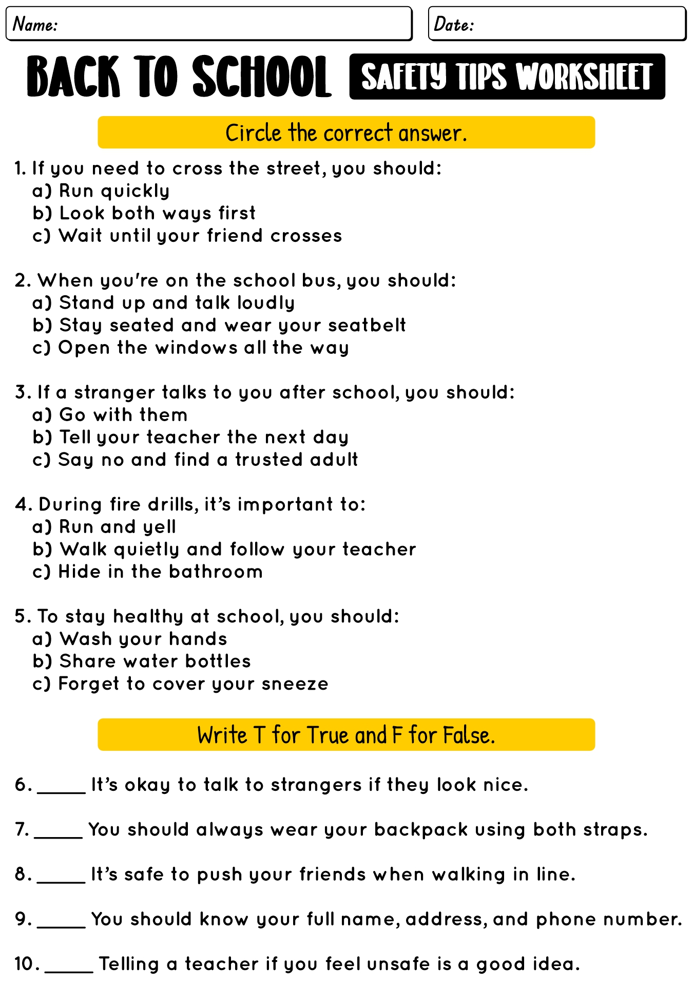 - Back To School Safety Tips Worksheets For Elementary Kids