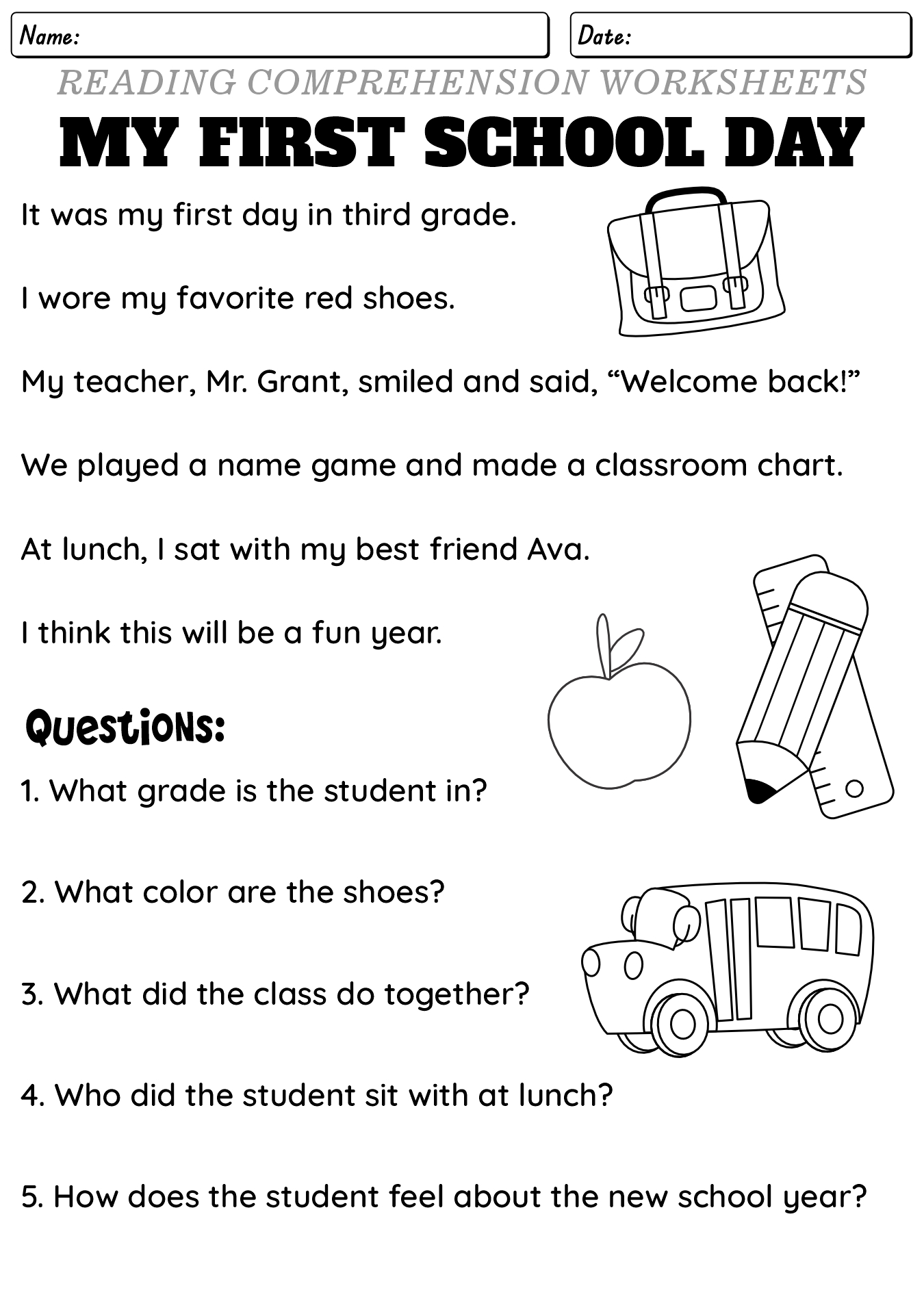 - Beginning Of The Year Reading Comprehension Worksheets For Elementary School