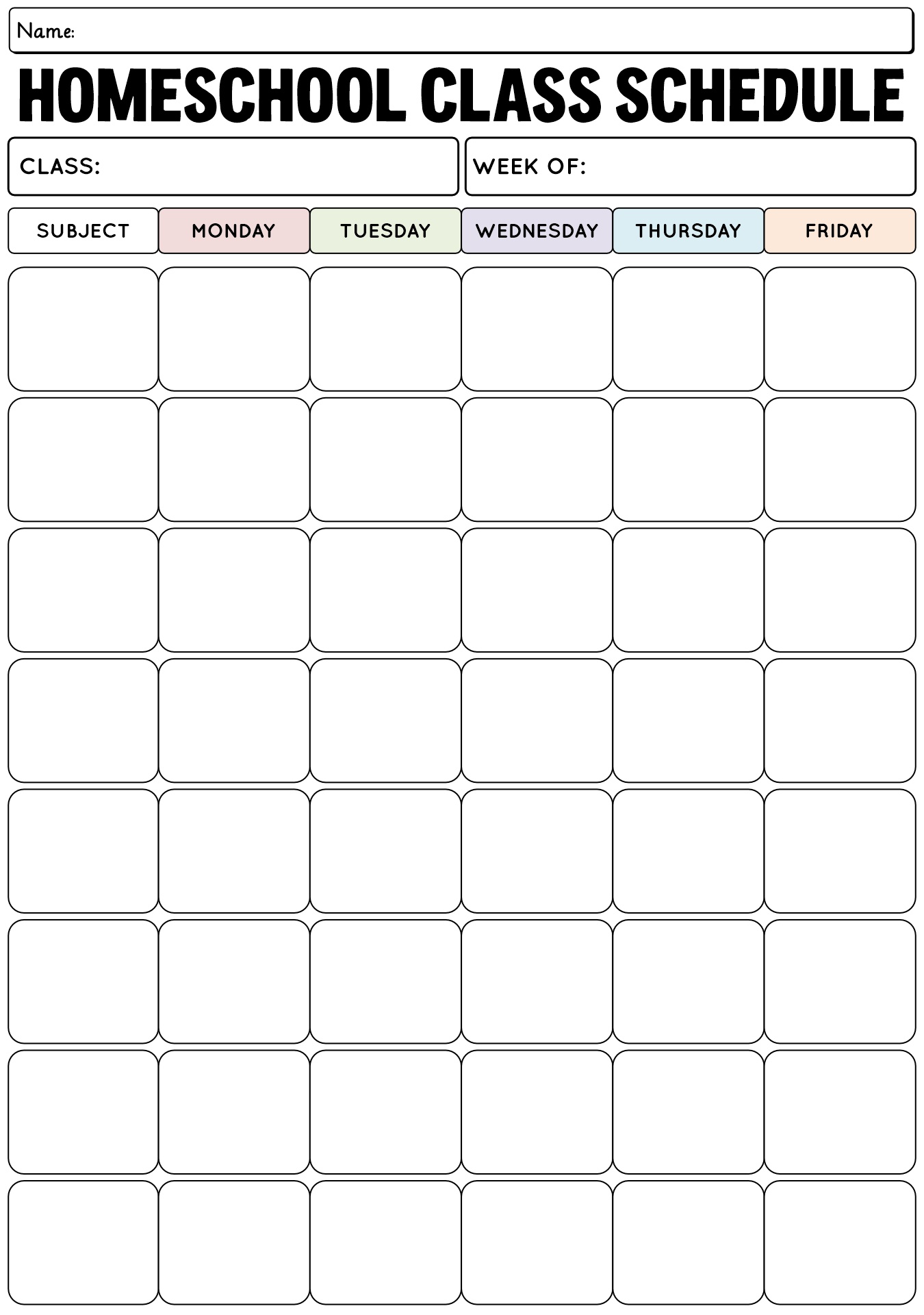 - Class Schedule Worksheet For Homeschool Curriculum Planning