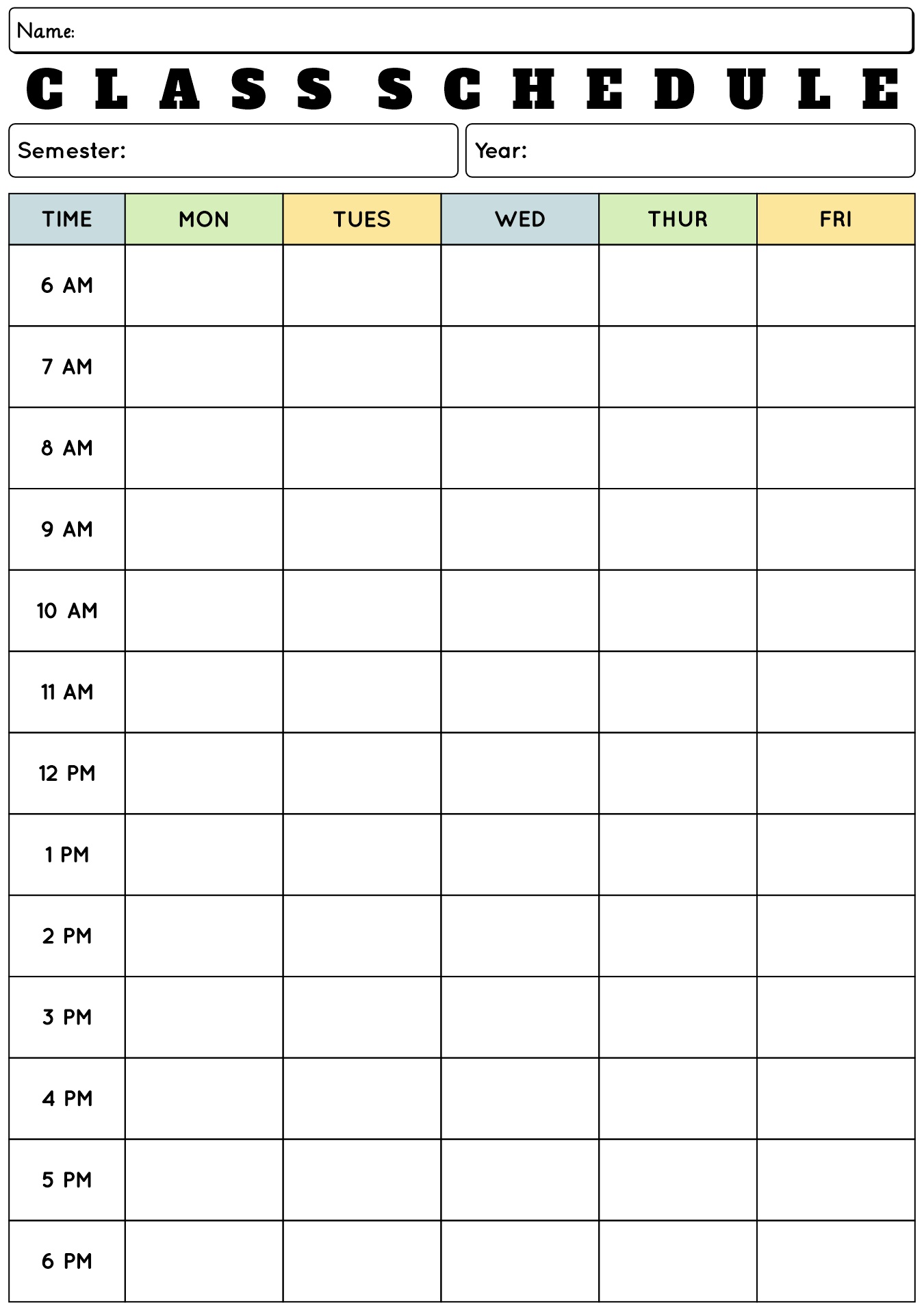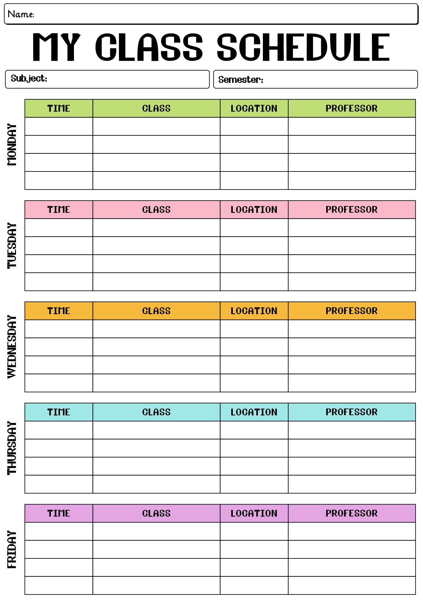 - Factor in Study Time: Don't forget to schedule in dedicated study time for each class! This will help you stay organized and on top of your coursework. Consider creating a color-coded study schedule to keep track of when you need to focus on each subject.