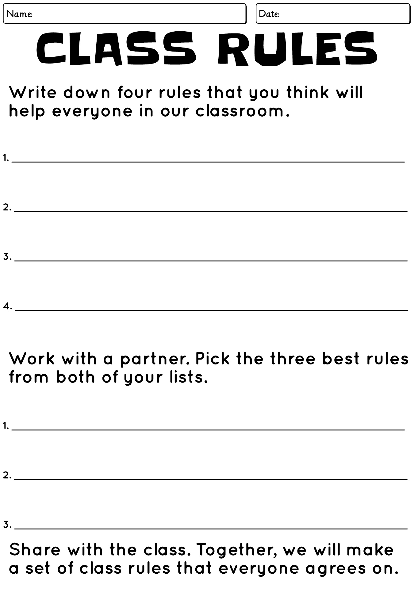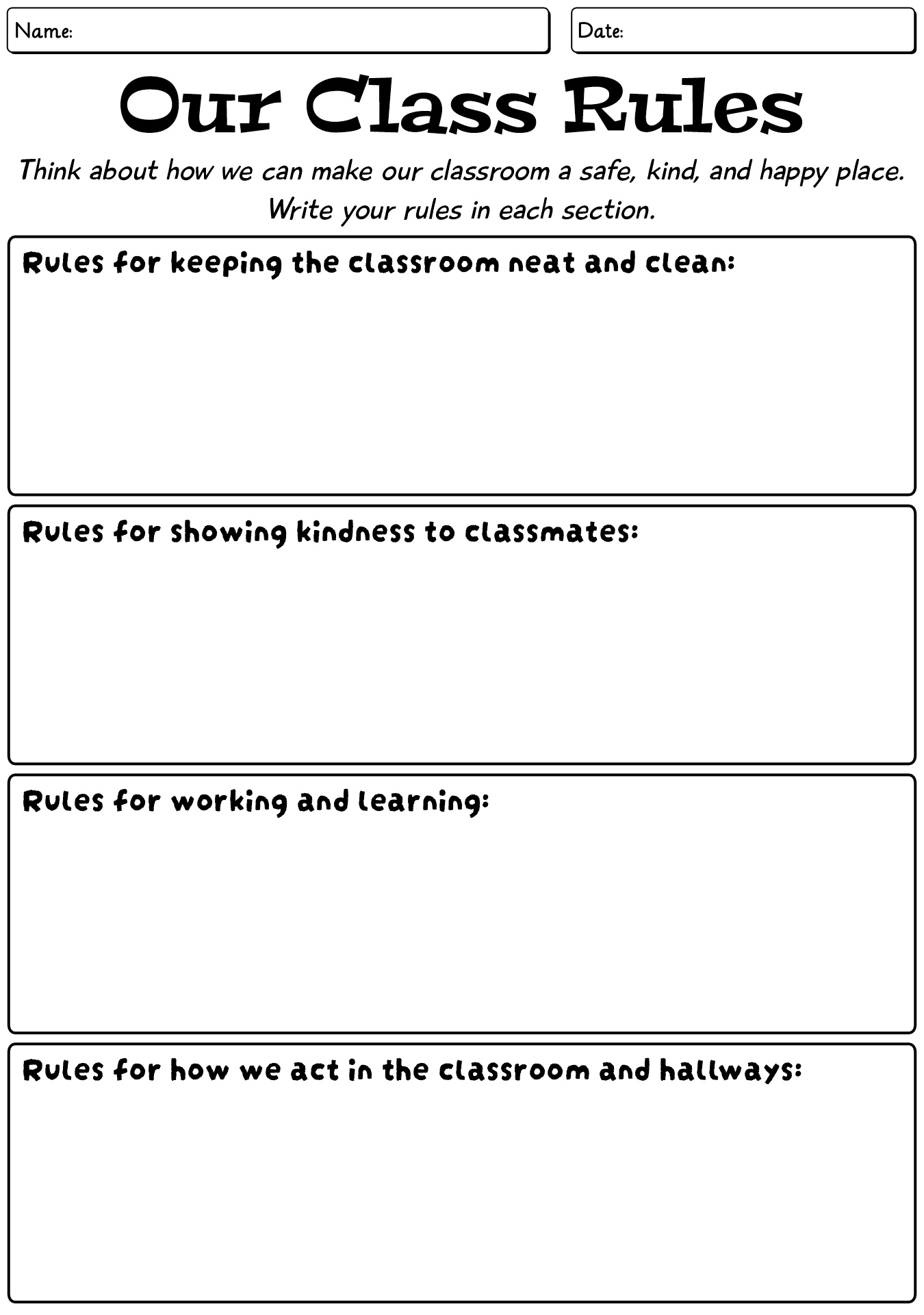 - Ownership: Involving students in designing classroom rules gives them a sense of responsibility, making them more committed to following those rules. Activities worksheets provide students with the opportunity to voice their opinions, discuss expectations, and come to a consensus on the rules that will govern their classroom.