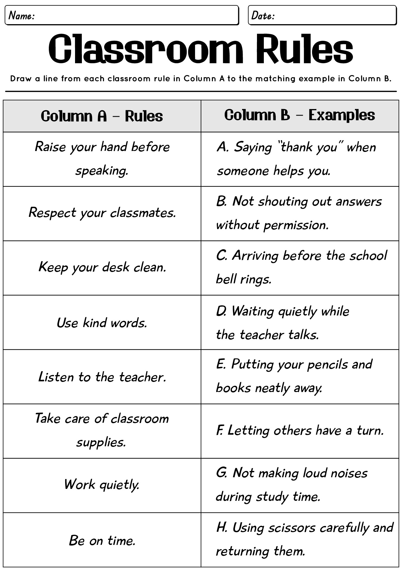 - Differentiated Instruction: Classroom rules worksheets should be adaptable to meet the needs of diverse learners. Teachers can provide different versions of the worksheets based on students' individual learning styles, abilities, and interests.