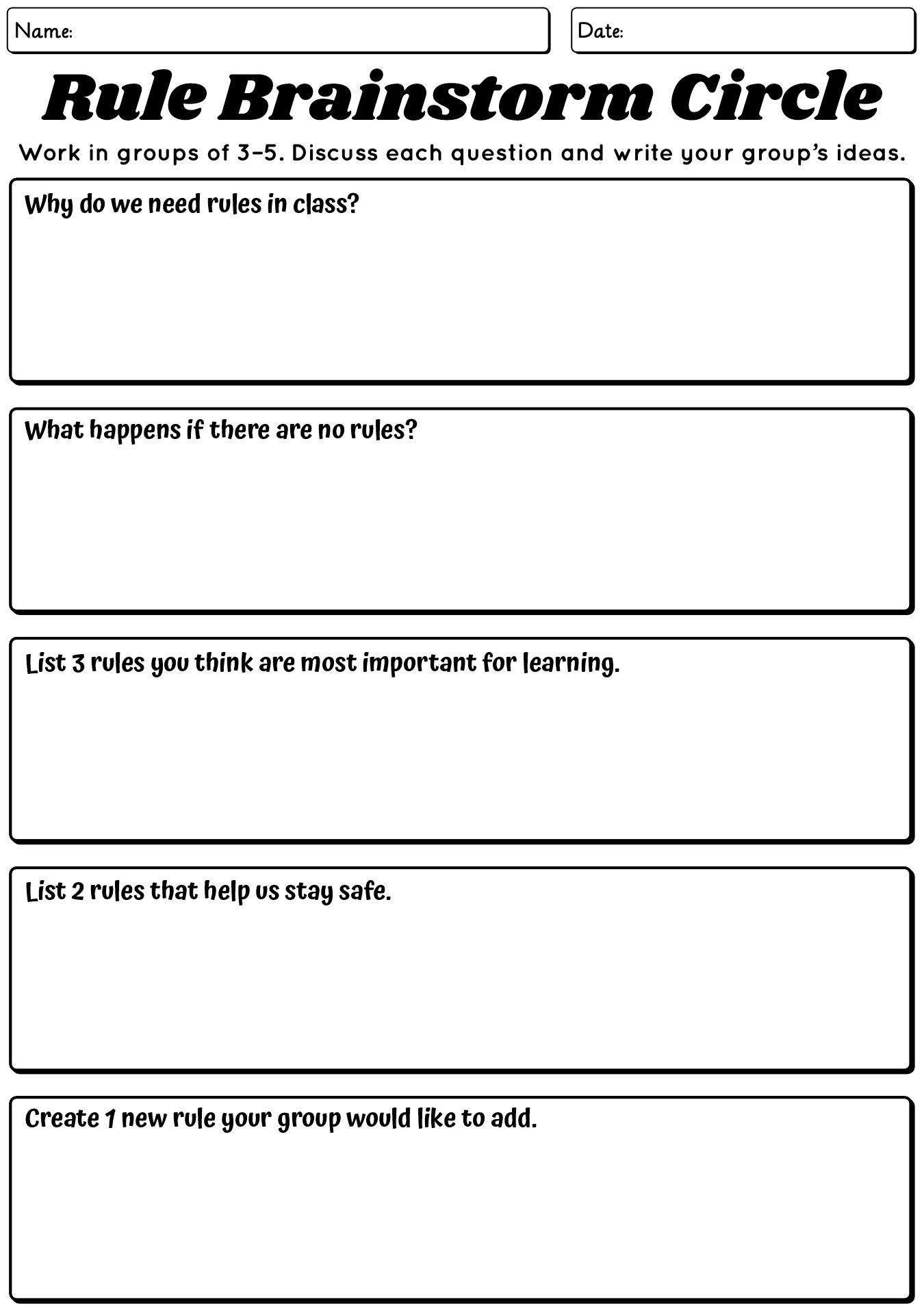 - Let students contribute to creating and reviewing the worksheets. This boosts their sense of ownership and helps them see why rules matter.