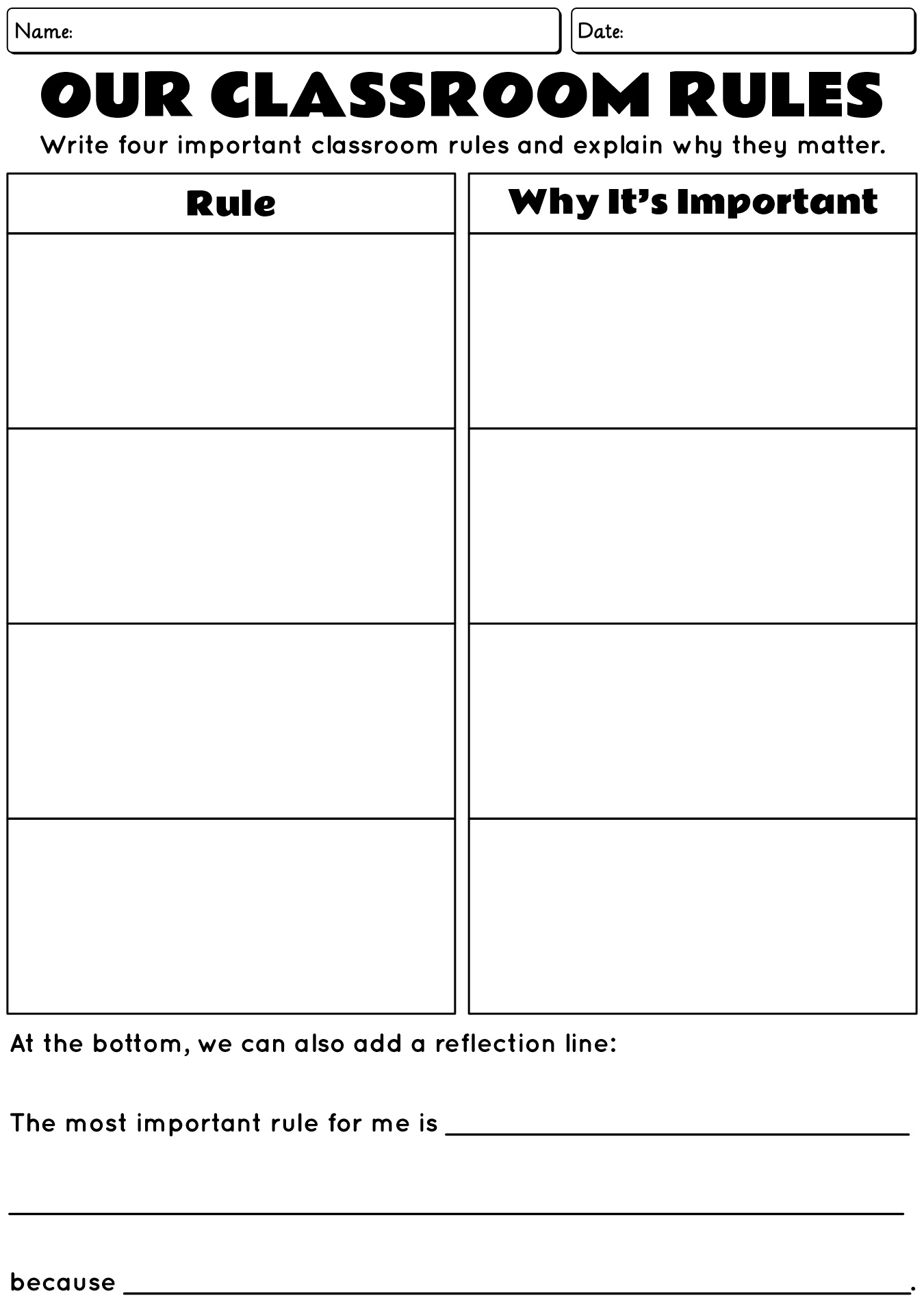 - Consistency: Using worksheets to outline and reinforce classroom rules ensures that expectations are communicated clearly and consistently to all students. This can help prevent misunderstandings and conflicts later on in the school year.
