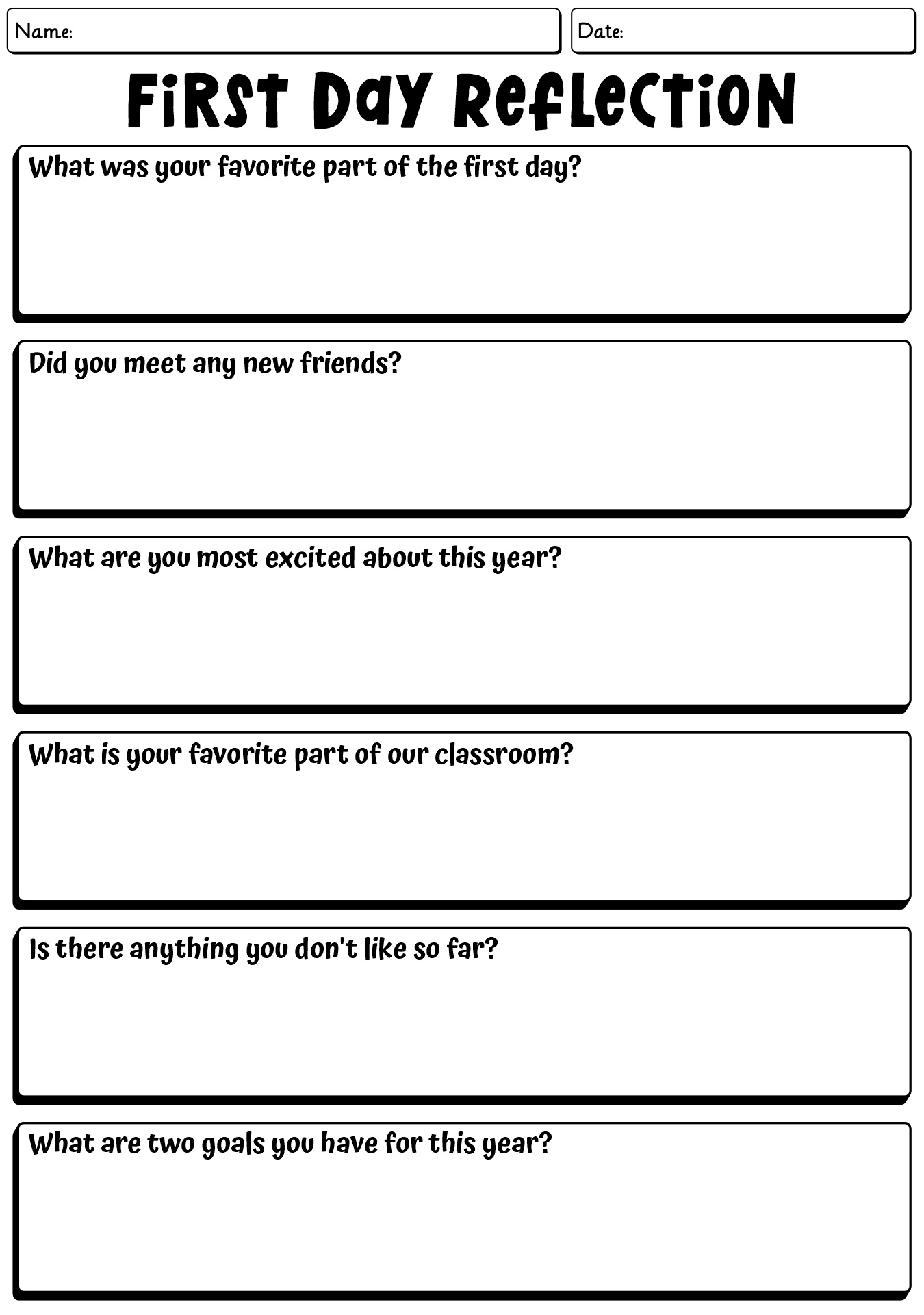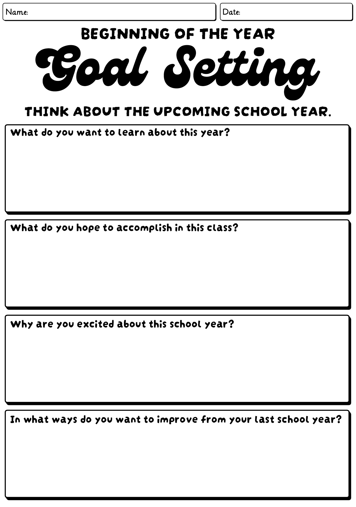 - Goal Setting: Setting goals is an important part of the learning process. Many first-day back to school worksheets include a section where students can write down their academic or personal goals for the year.