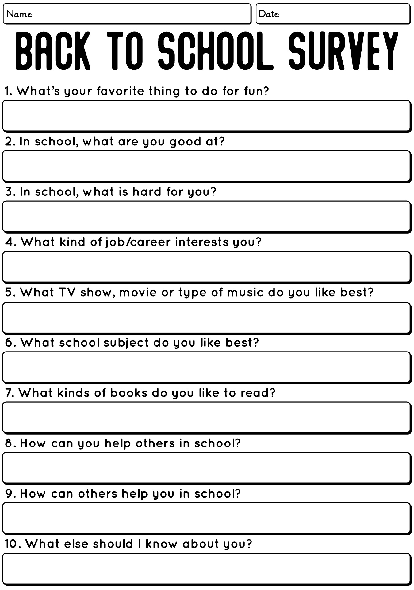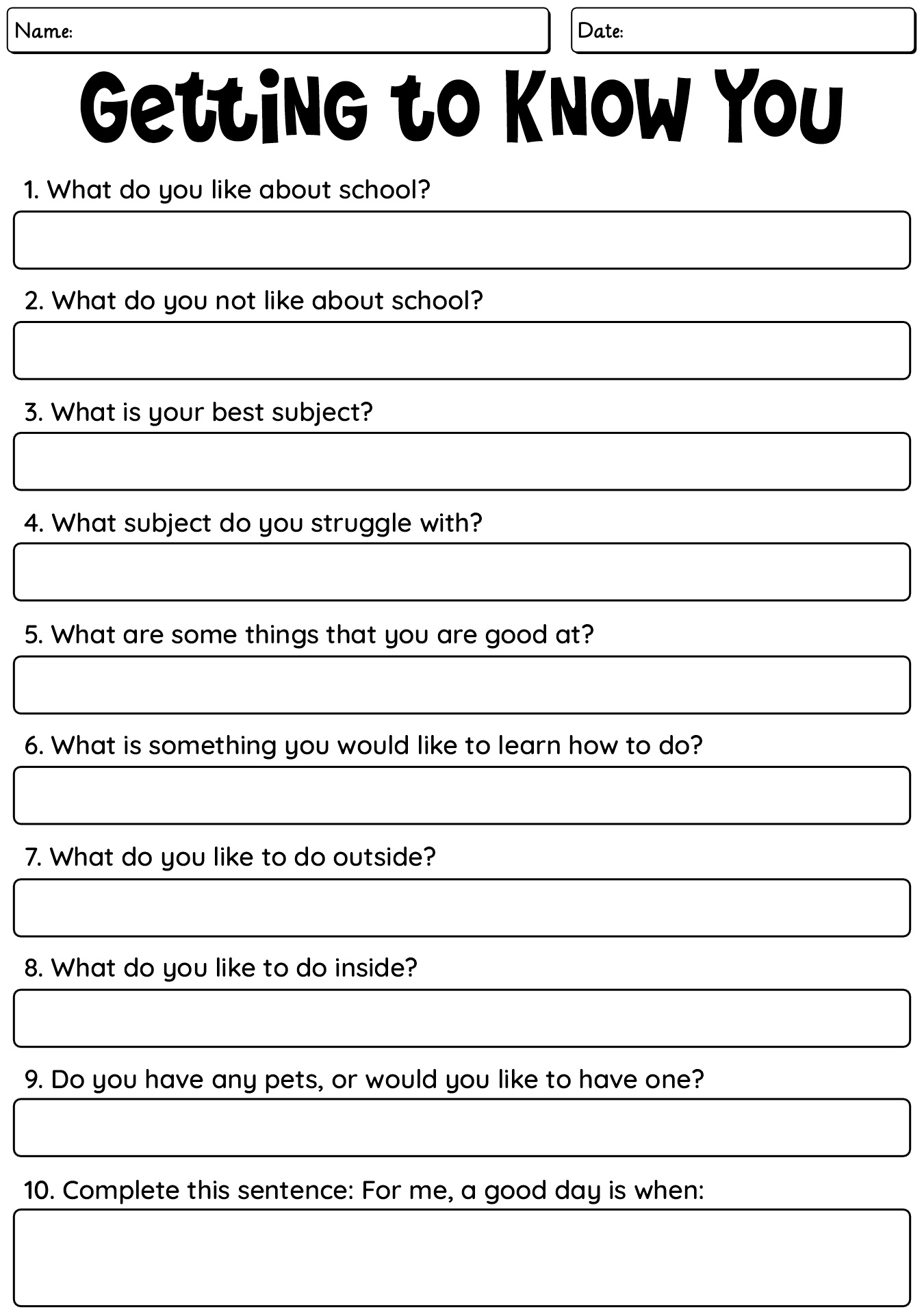- Personal Information: This section usually includes fields for students to write their name, grade, and other personal details. It helps teachers get to know their students better and allows students to share a little bit about themselves.