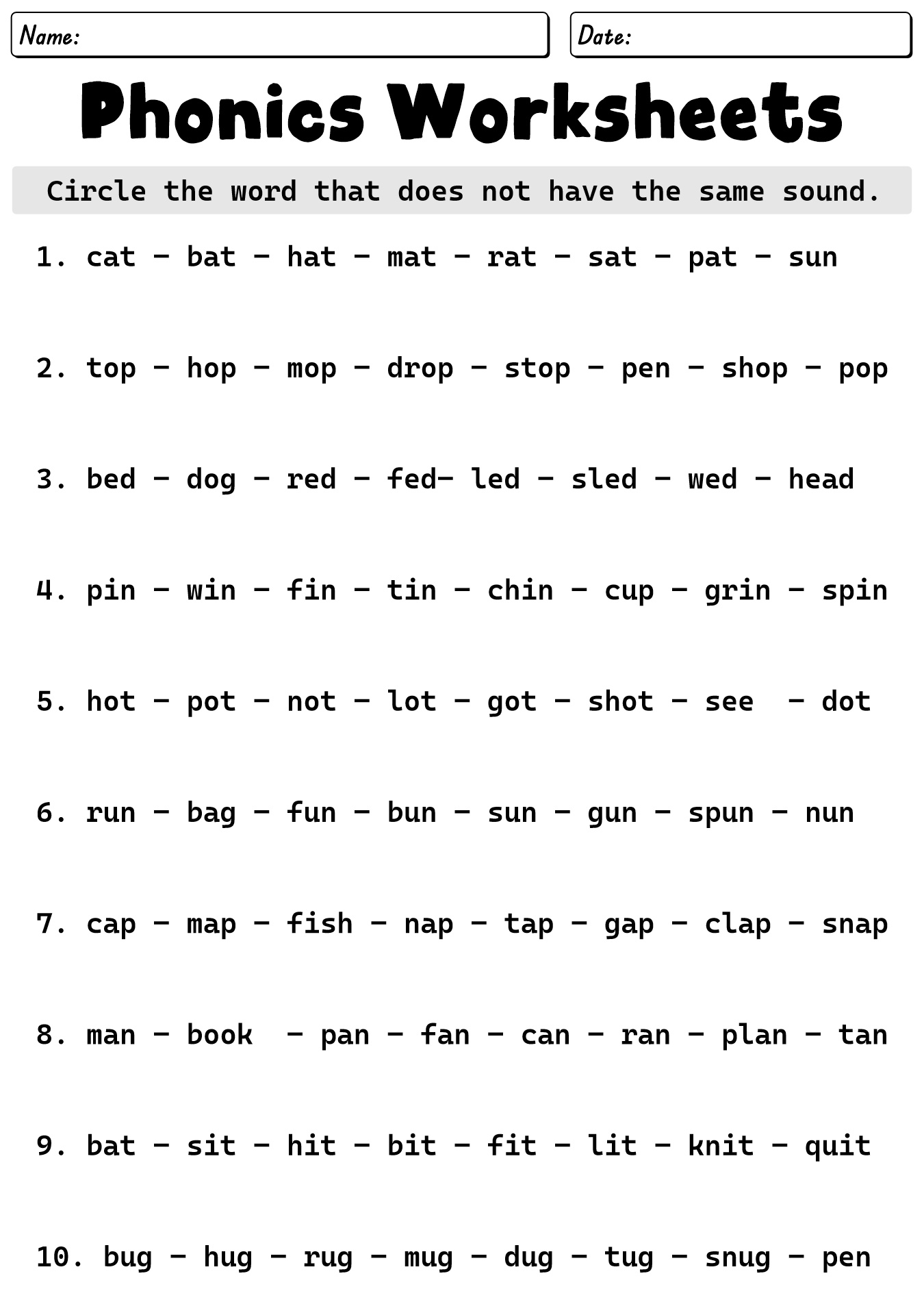 - The next step is to have children practice reading simple words using the first phonic worksheet 1st grade. Include a variety of words with different vowel and consonant combinations to help children expand their vocabulary and improve their reading skills.