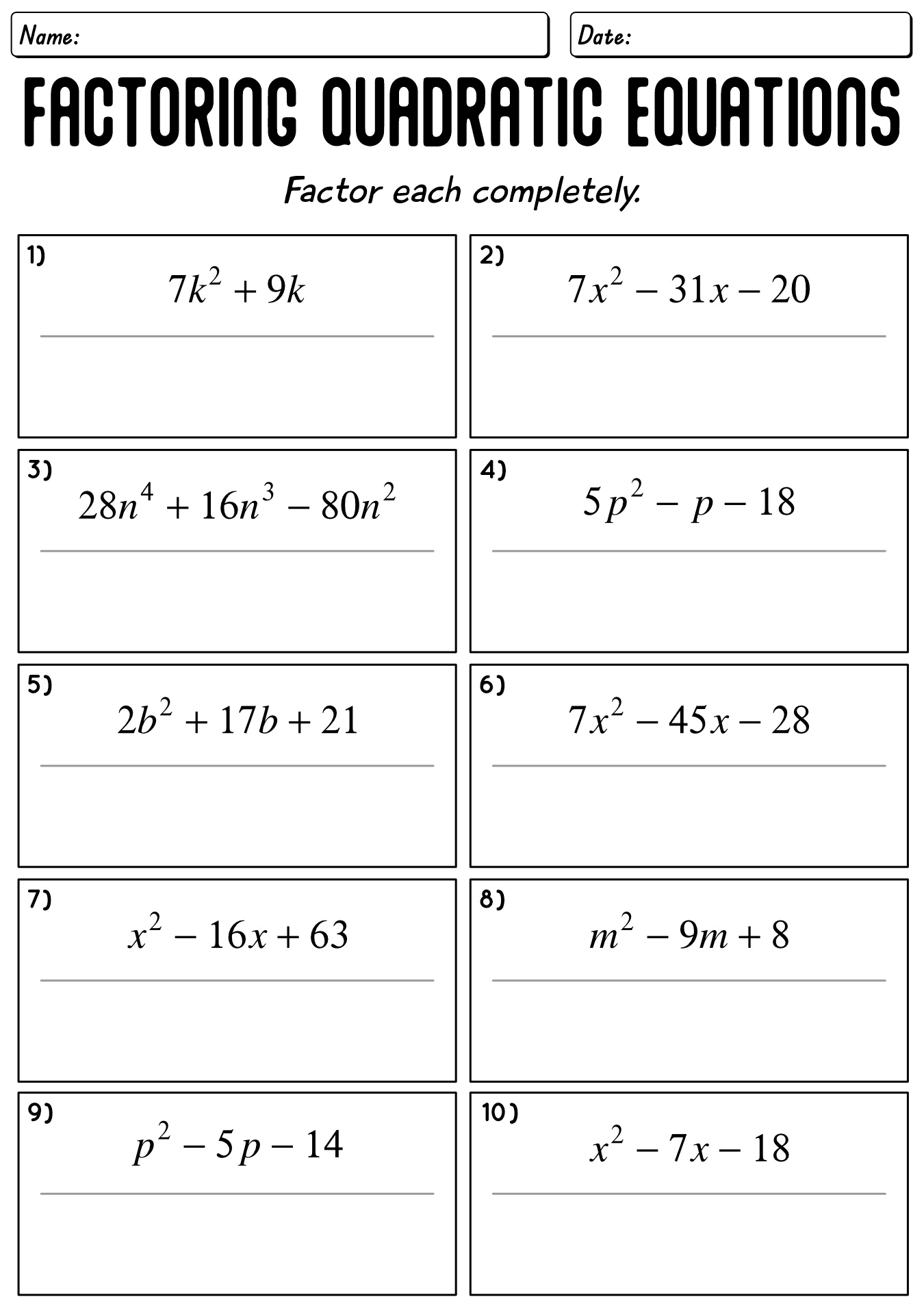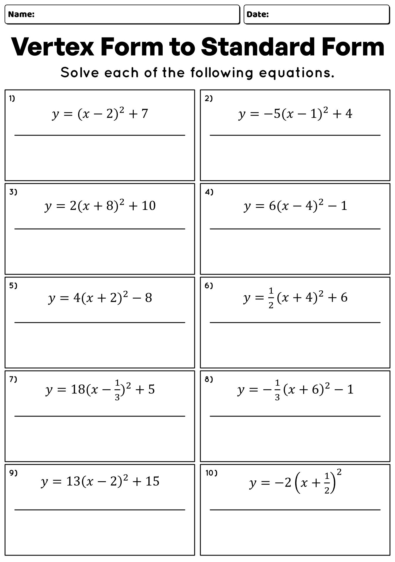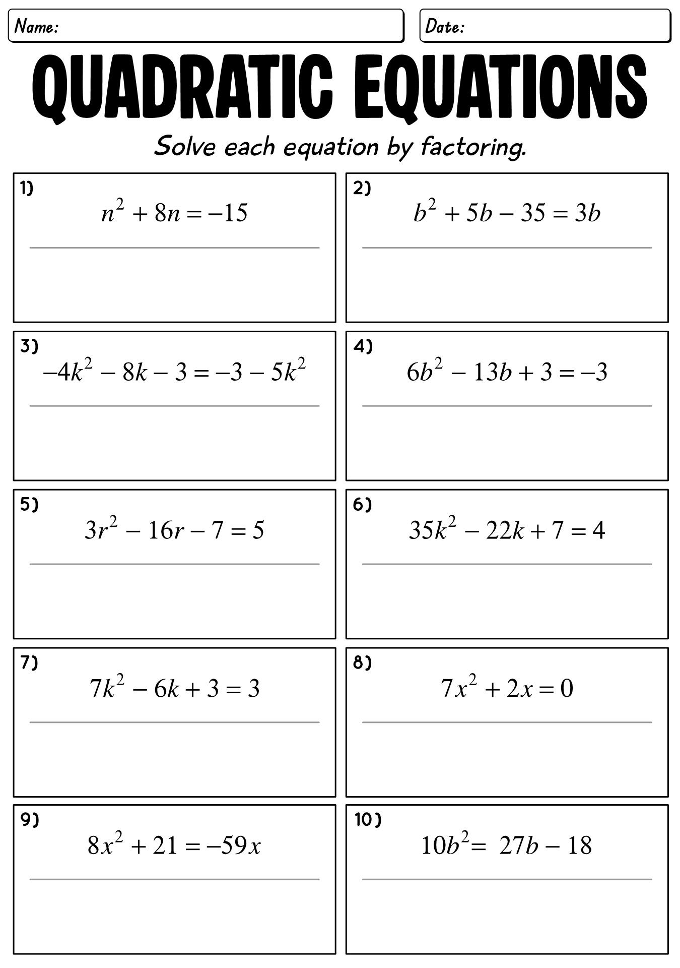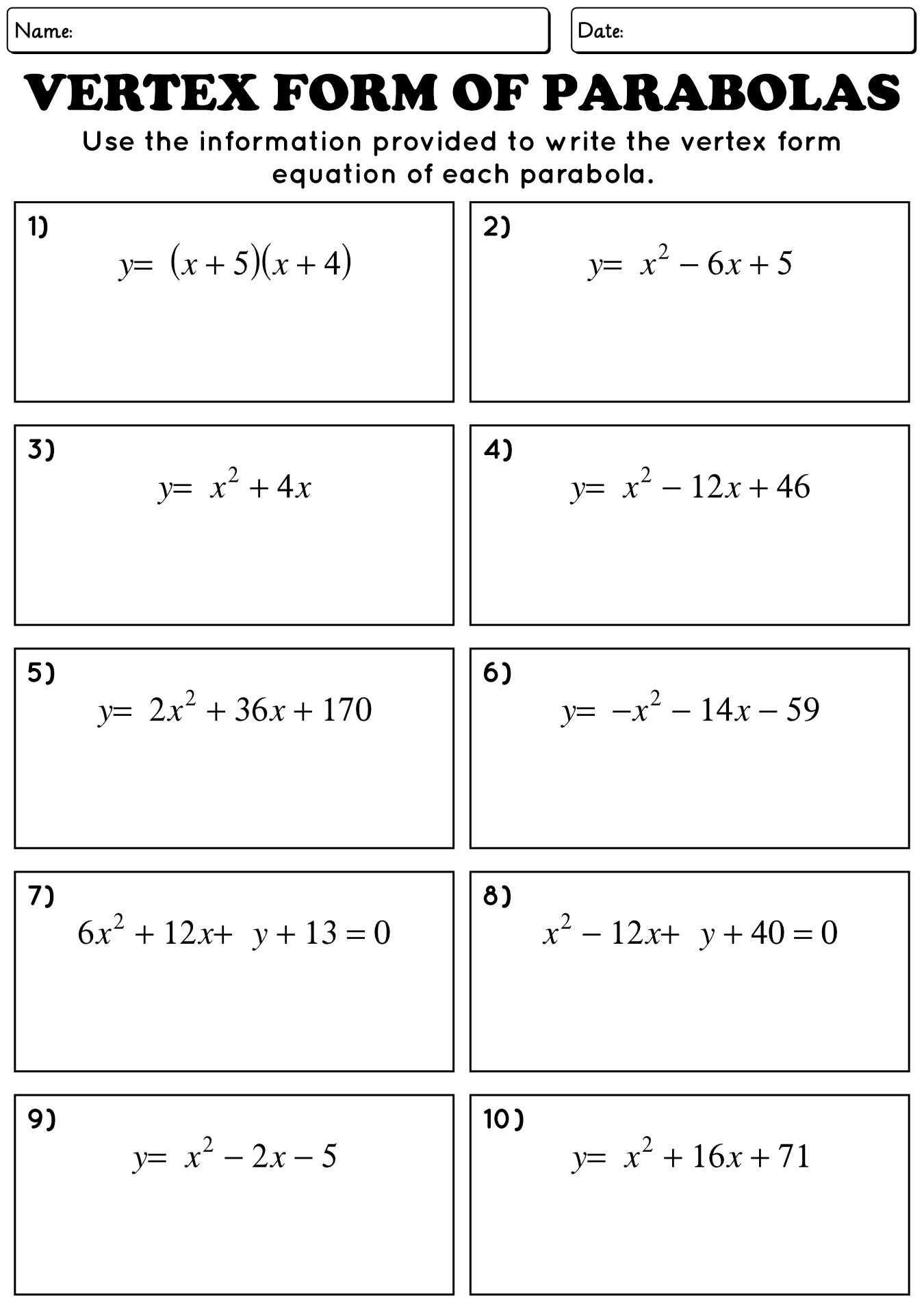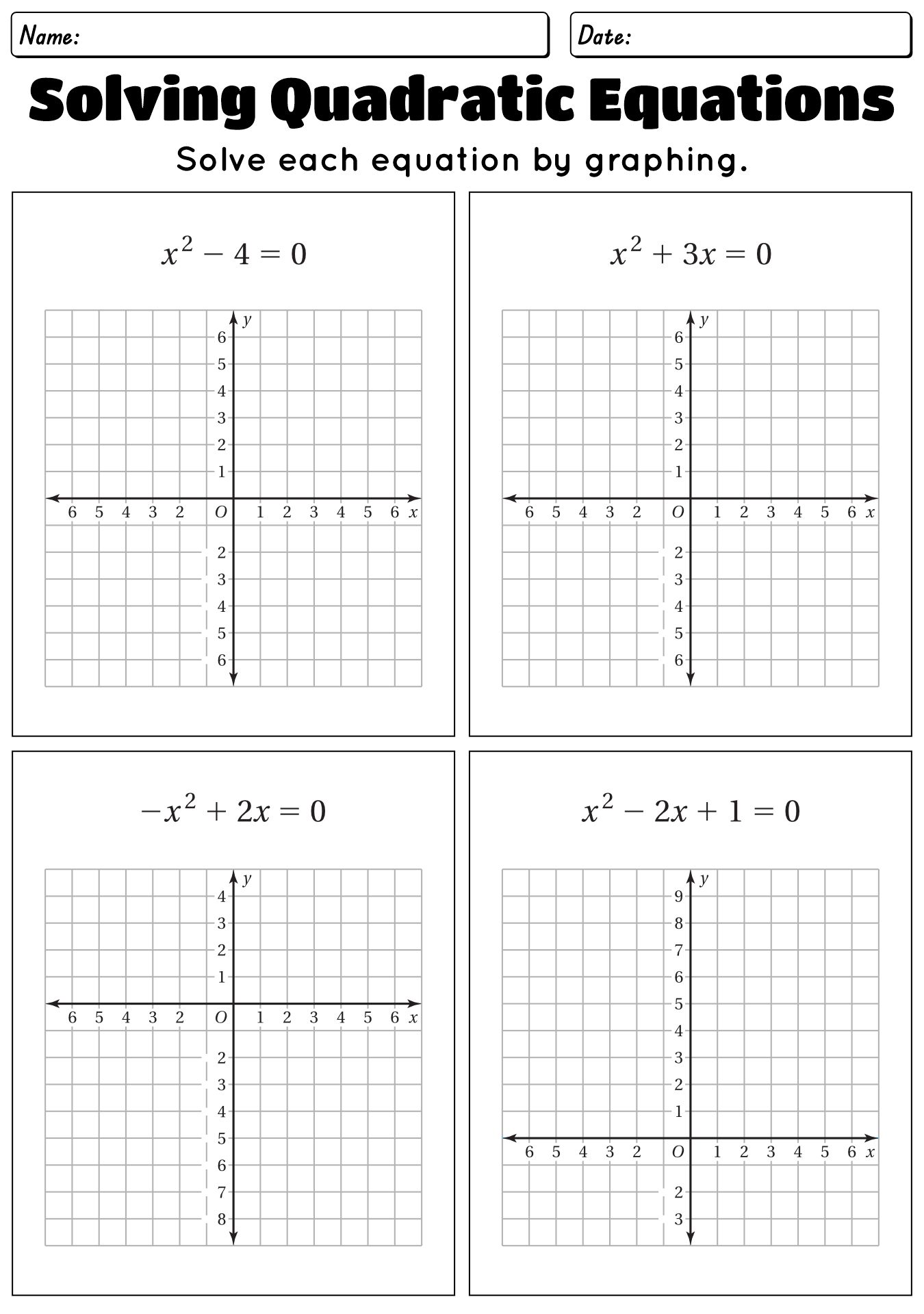 Before we delve into what a graphing quadratic equations worksheet is, let's first ensure we have a good grasp of what quadratic equations are. In mathematics, a quadratic equation is a second-degree polynomial equation of the form ax² + bx + c = 0, where a, b, and c are constants, and a is not equal to 0. A quadratic equation creates a parabola, a smooth, curved graph that opens upward or downward depending on its coefficients.