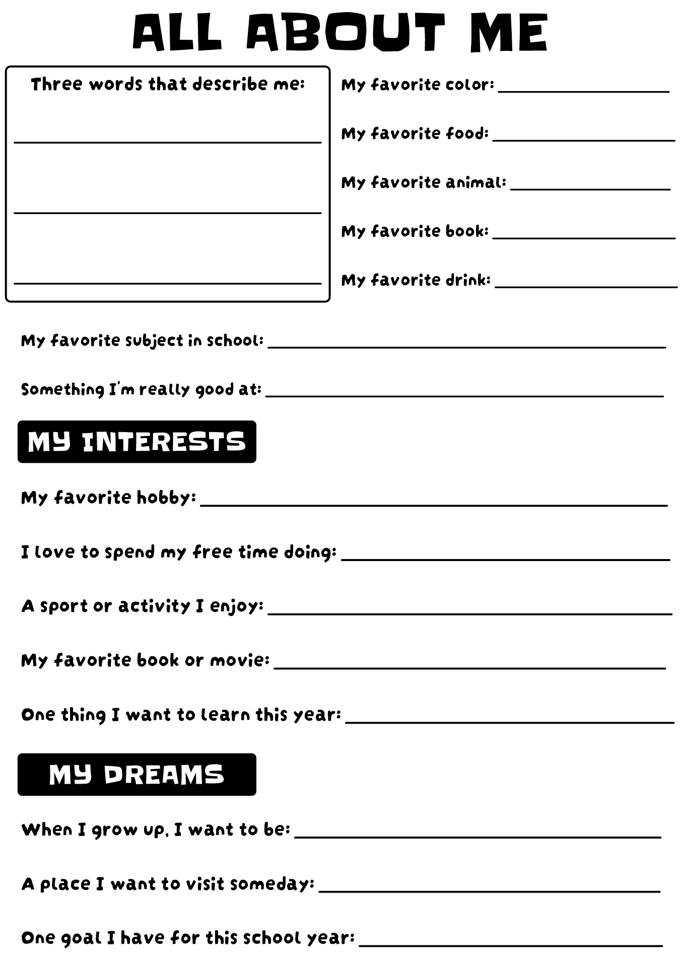 Teachers use an about myself worksheet at the start of the year for several important reasons.
