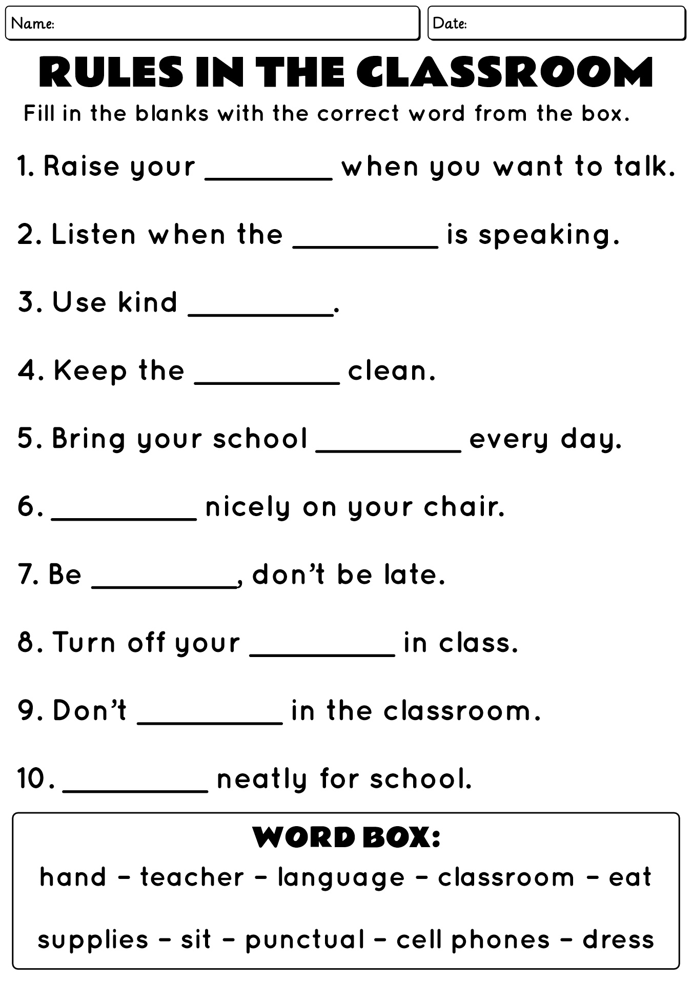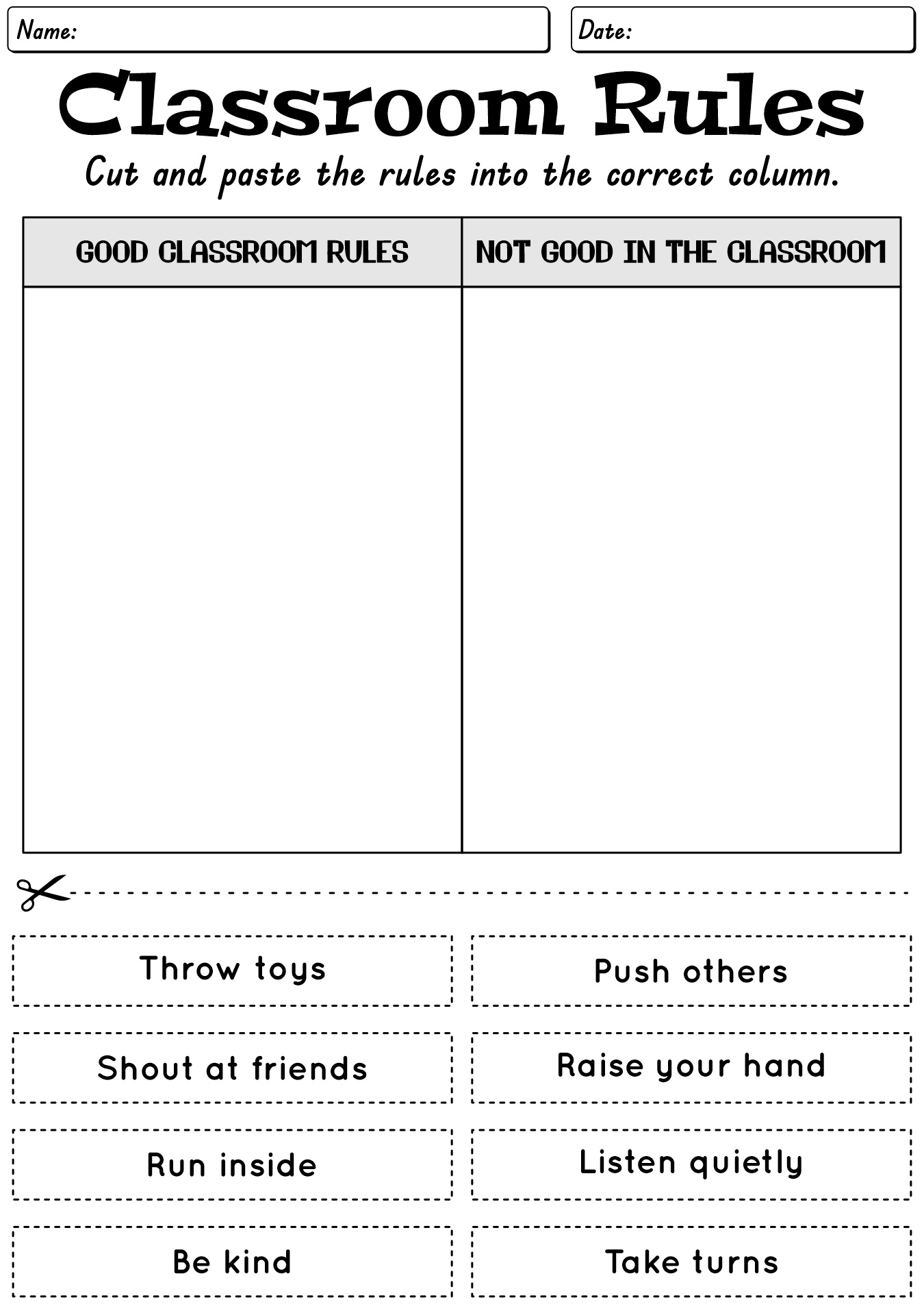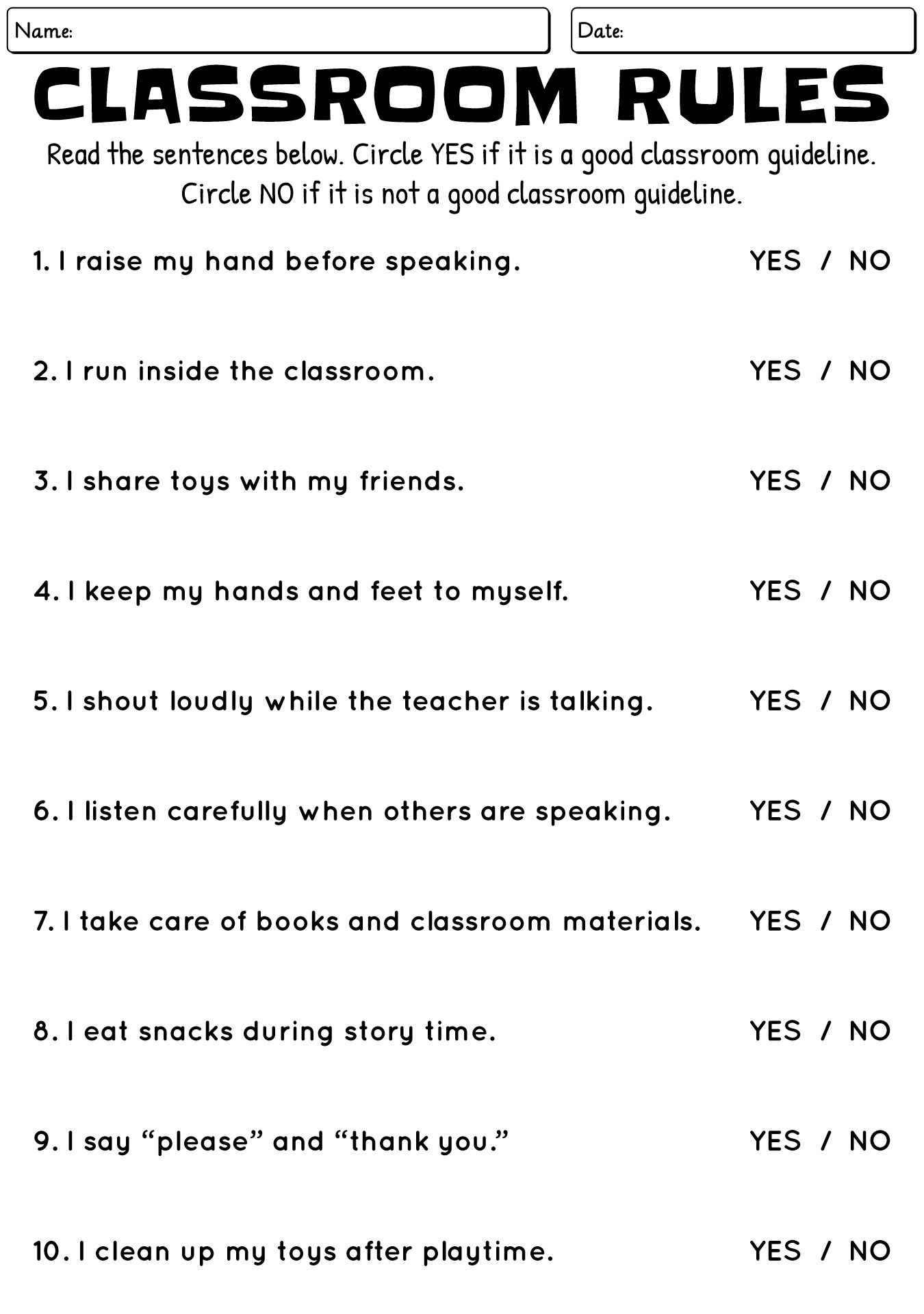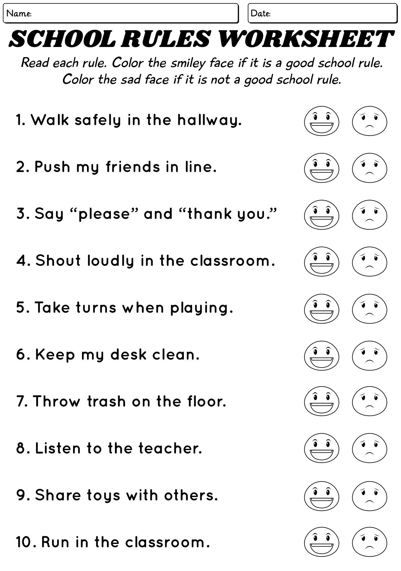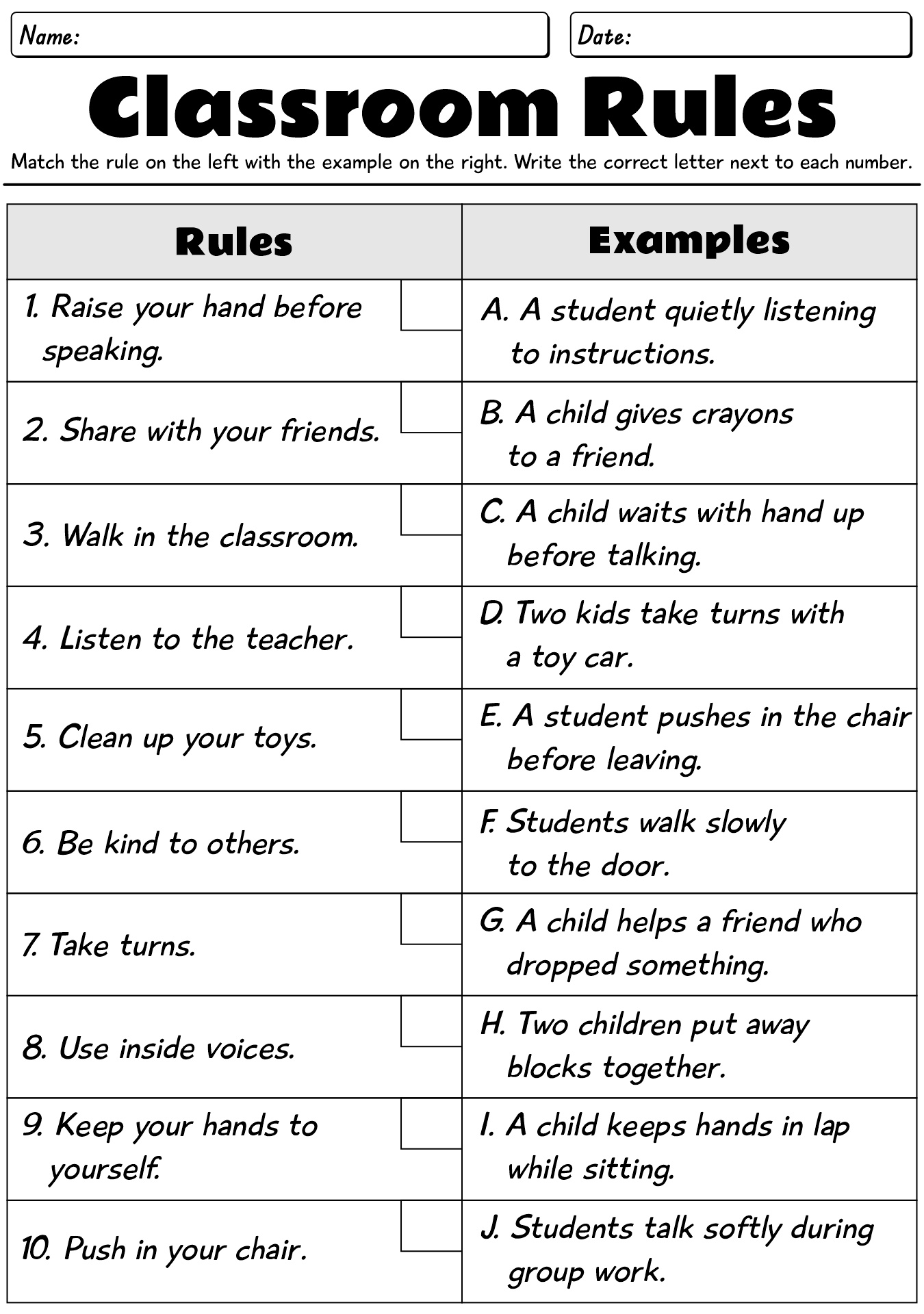 - Classroom Rules Worksheet