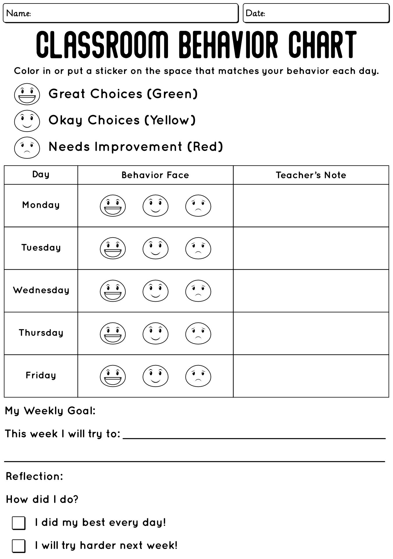 - Kindergarten Classroom Behavior Chart Worksheet