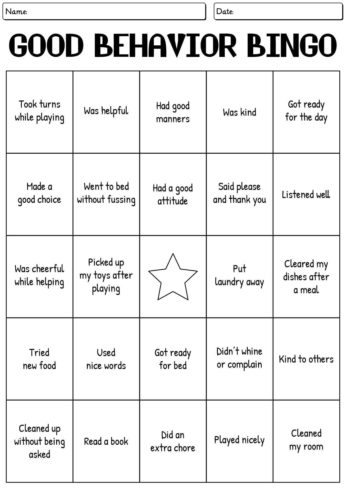 - Kindergarten Classroom Conduct Bingo Game Sheet