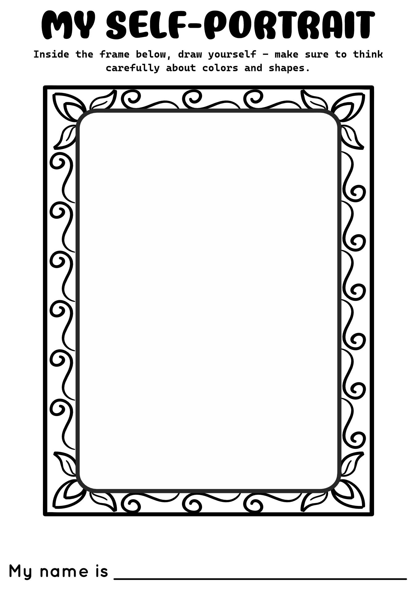 - Self-Expression and Creativity: Creating a self-portrait allows children to express themselves in a unique and creative way. Kids can choose the colors, shapes, and details that best represent them, giving them a sense of ownership over their work.