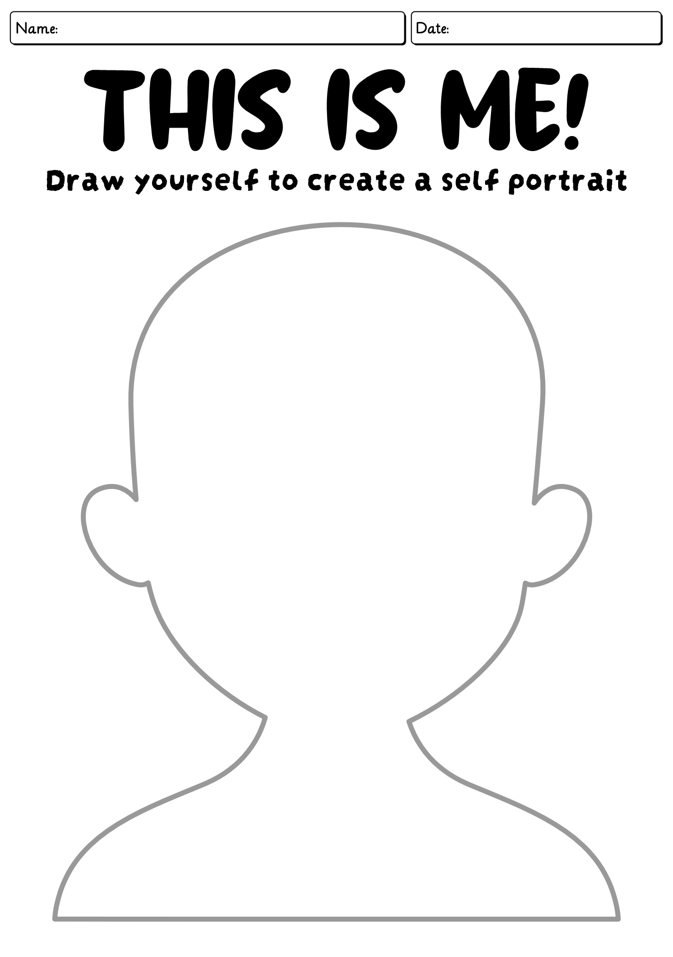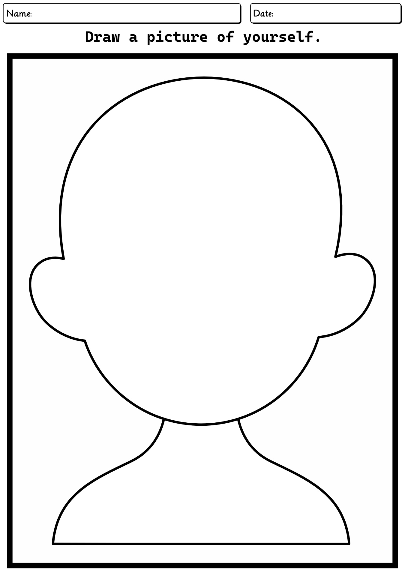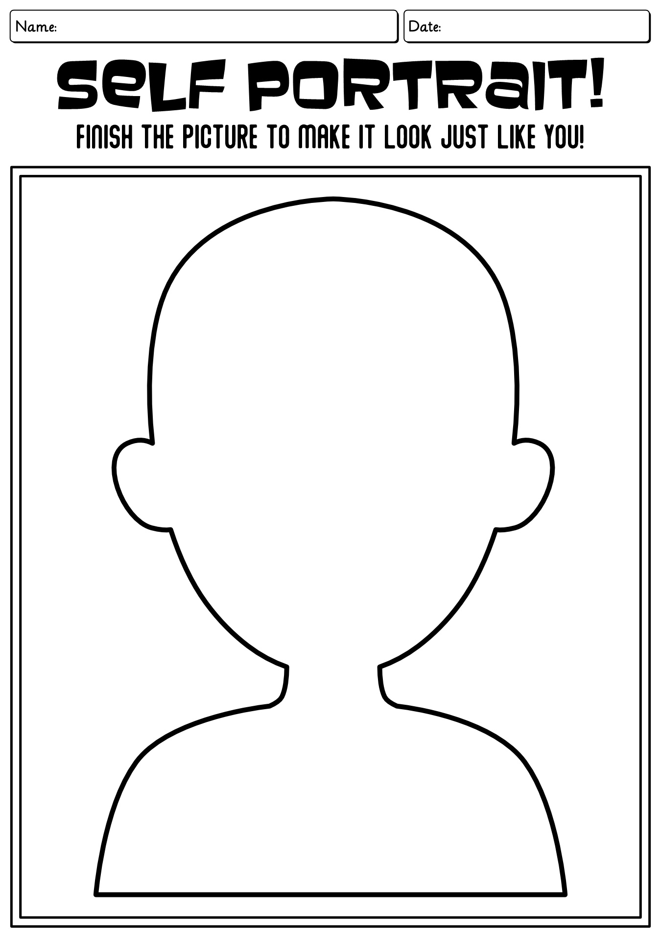 - A blank outline of a head and shoulders for the child to draw their portrait