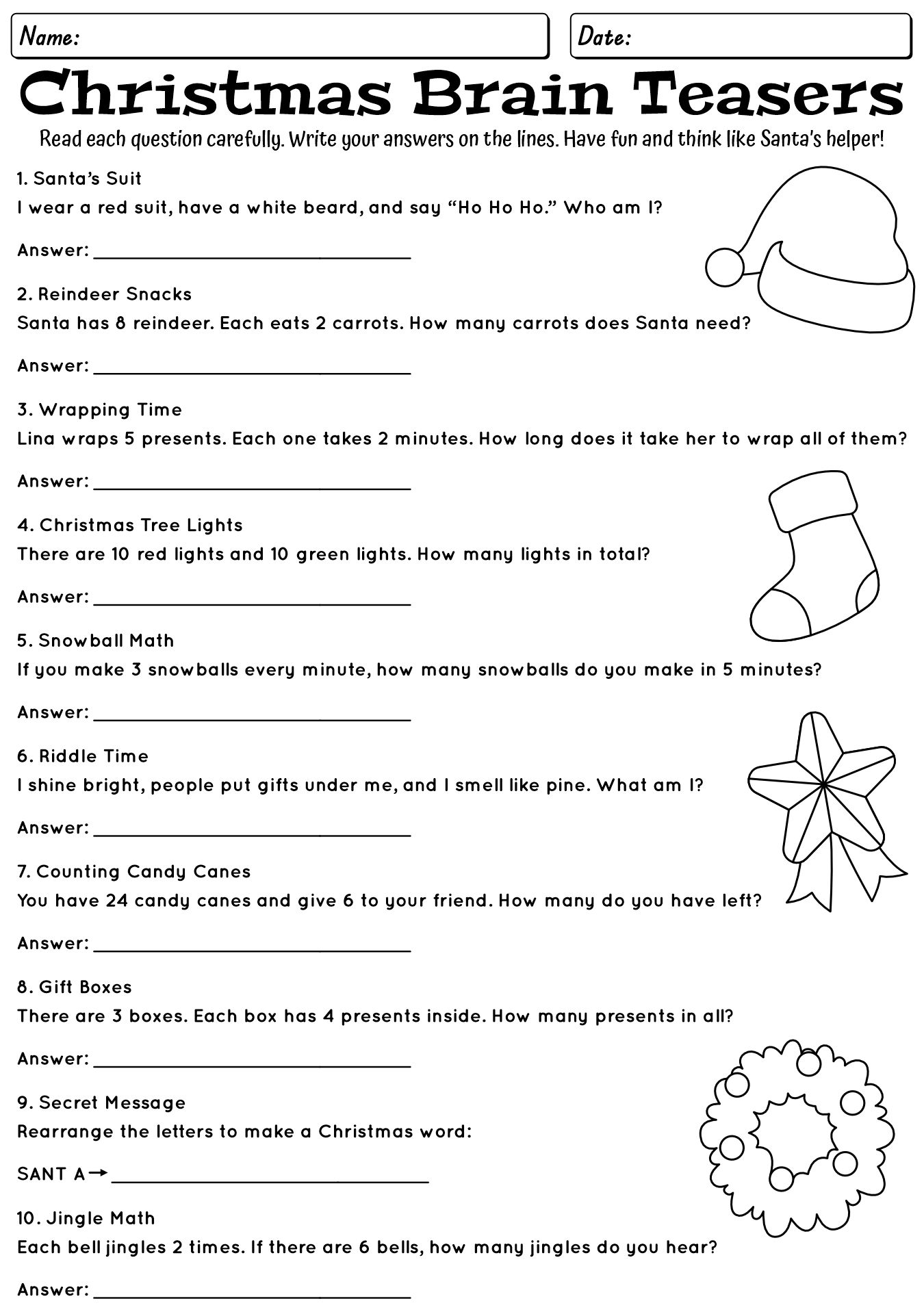 Absolutely! The days before Christmas can be the hardest to manage in a classroom, kids are buzzing with excitement and counting down to the holidays. That’s where Printable Christmas Brain Teasers Worksheets come in handy.
