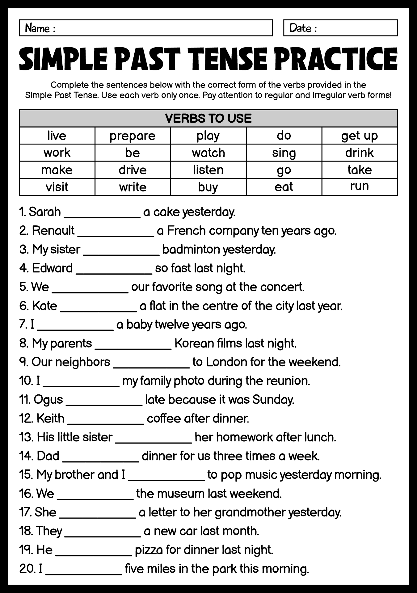 Are you looking for a way to practice using the simple past tense in English? A simple past worksheet can be a helpful tool to enhance your understanding and usage of this essential verb tense.