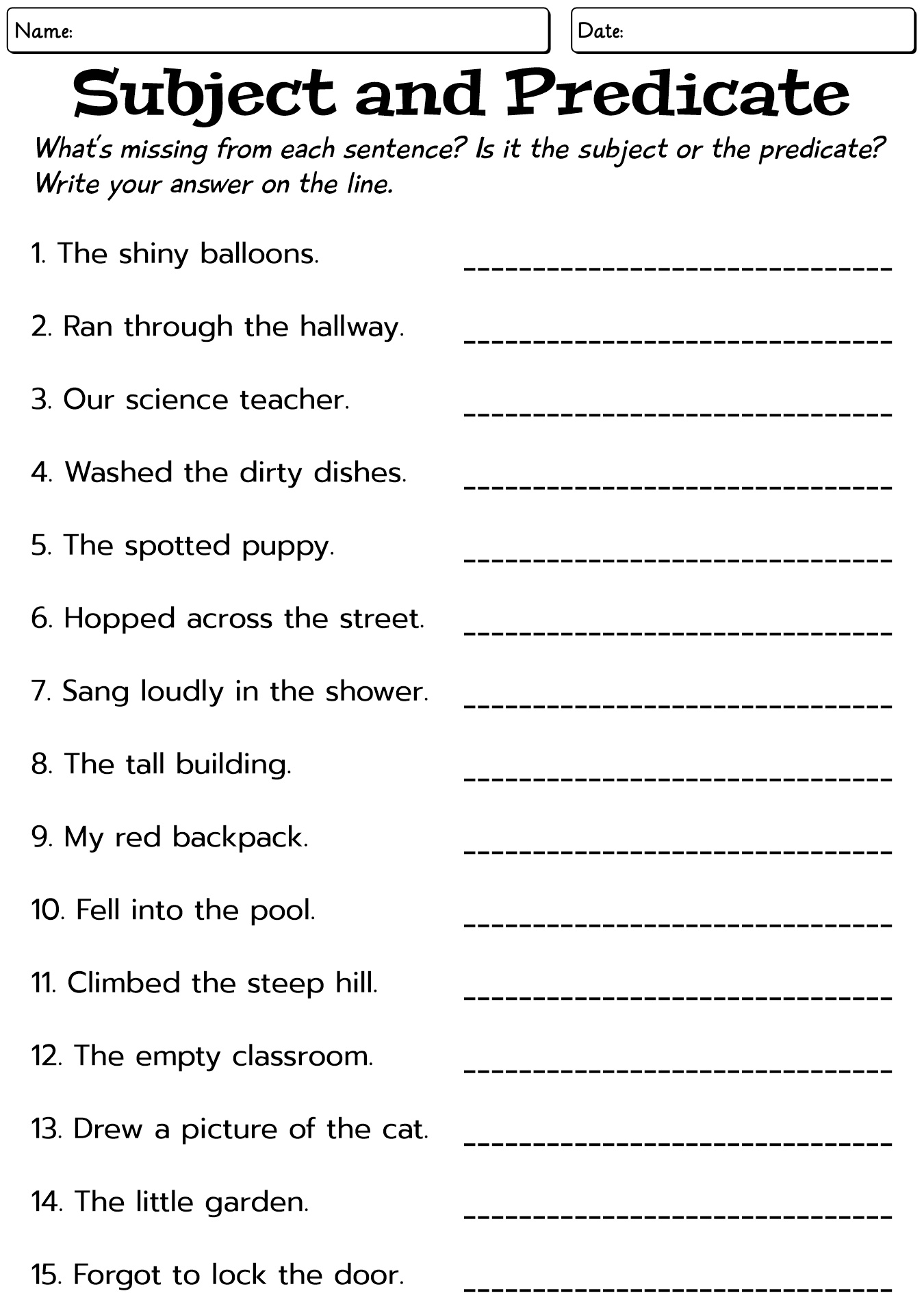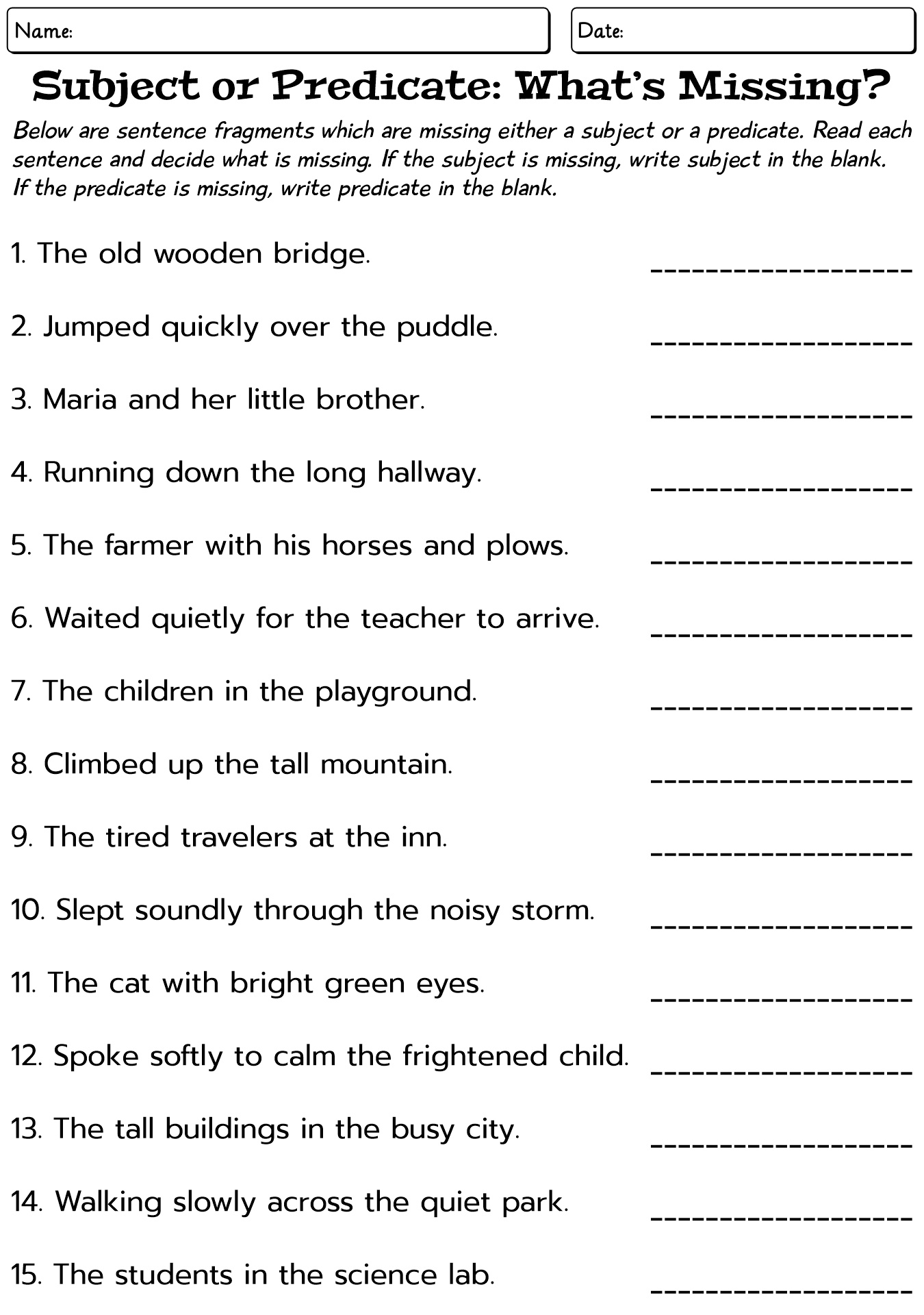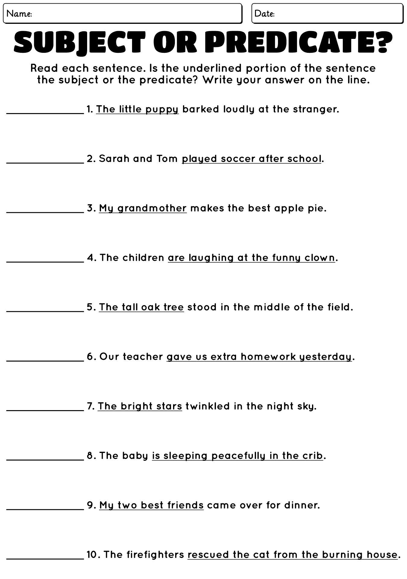 - Enhancing Language Fluency: Practice with subject and predicate worksheets helps students become more fluent in identifying and using these elements in their own writing. This fluency contributes to improved language skills and communication abilities overall.
