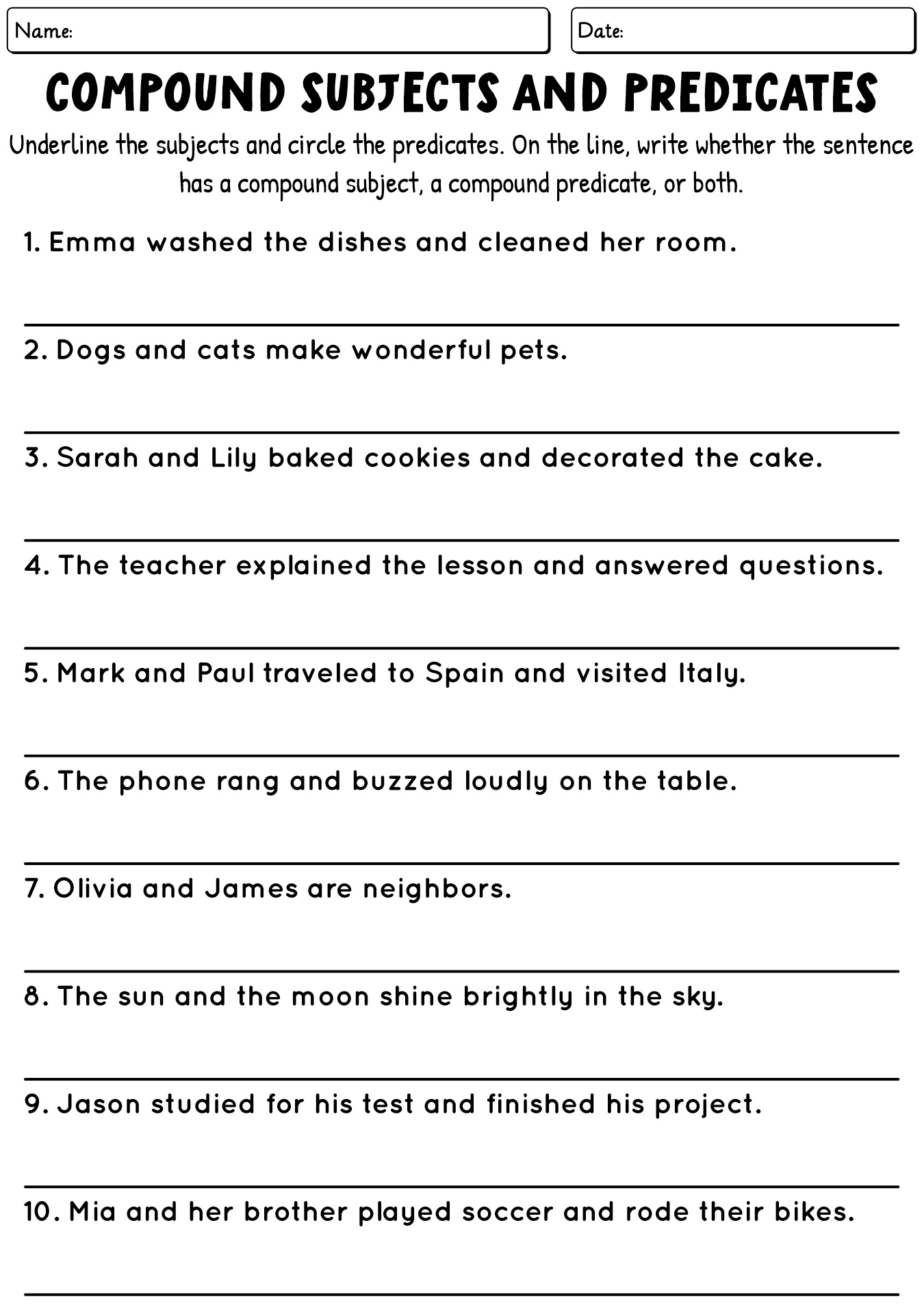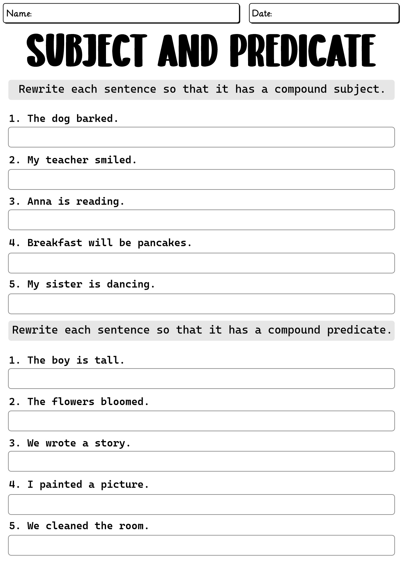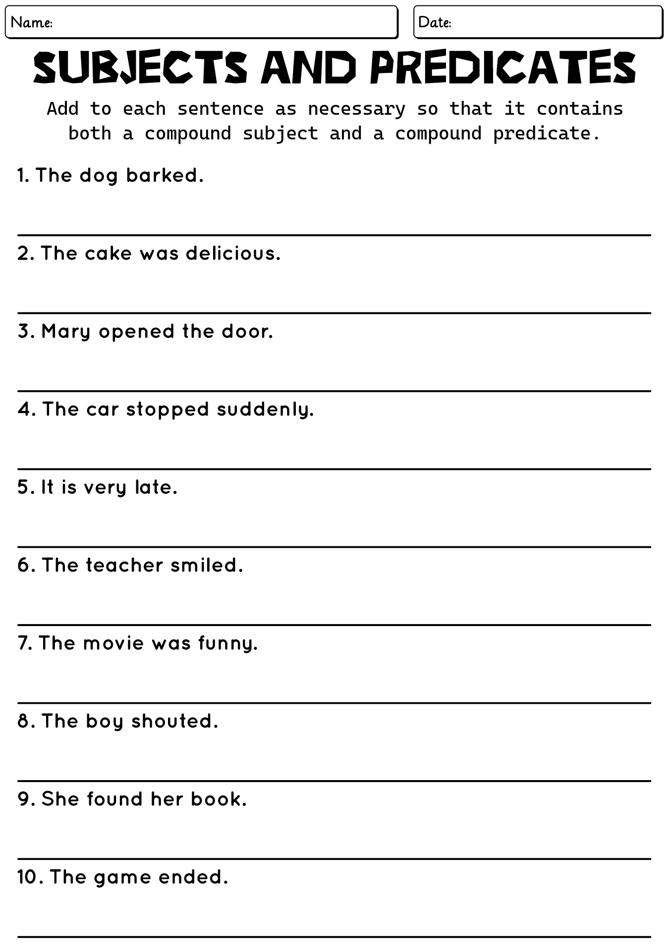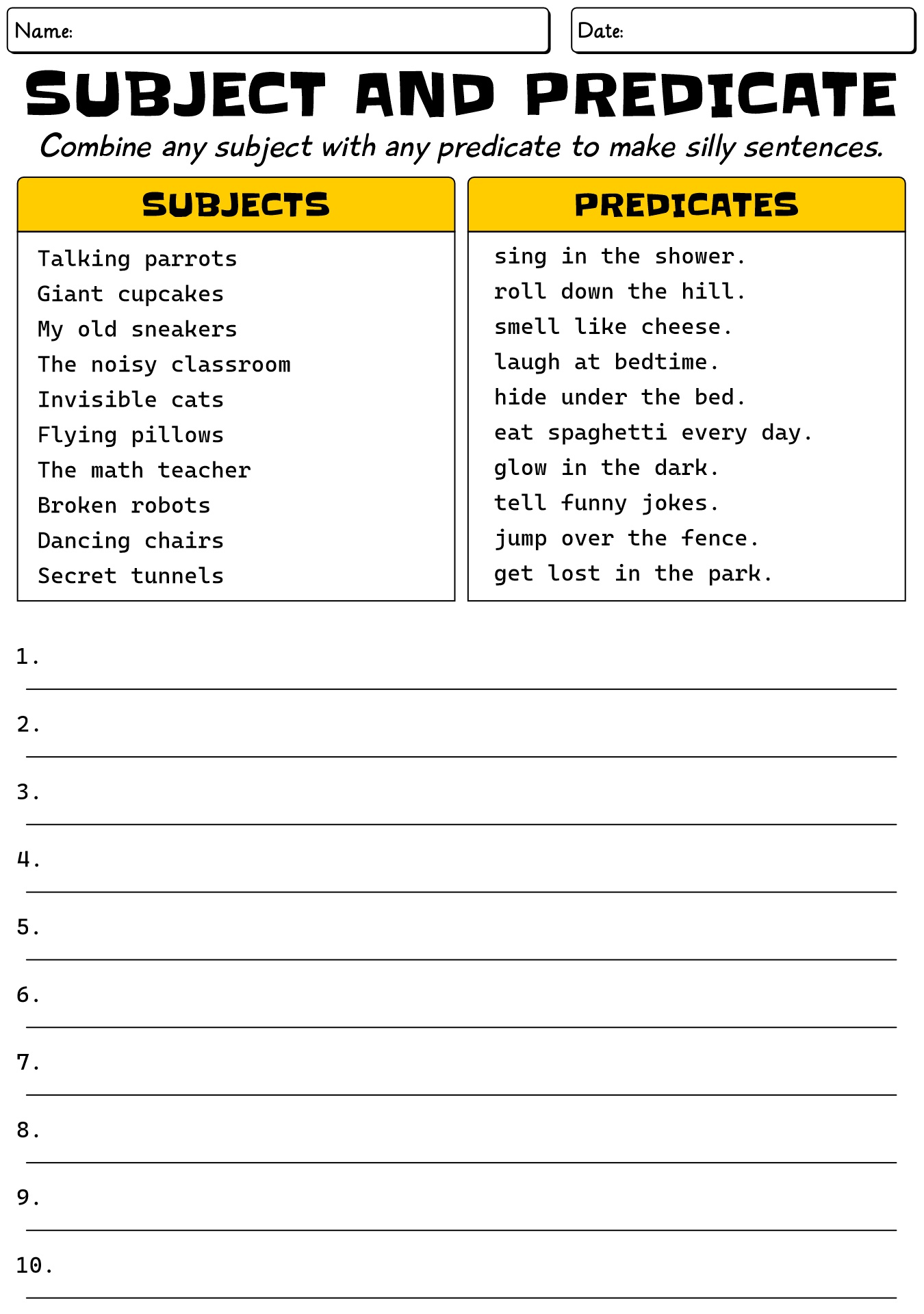 - Enhancing Language Fluency: Practice with subject and predicate worksheets helps students become more fluent in identifying and using these elements in their own writing. This fluency contributes to improved language skills and communication abilities overall.