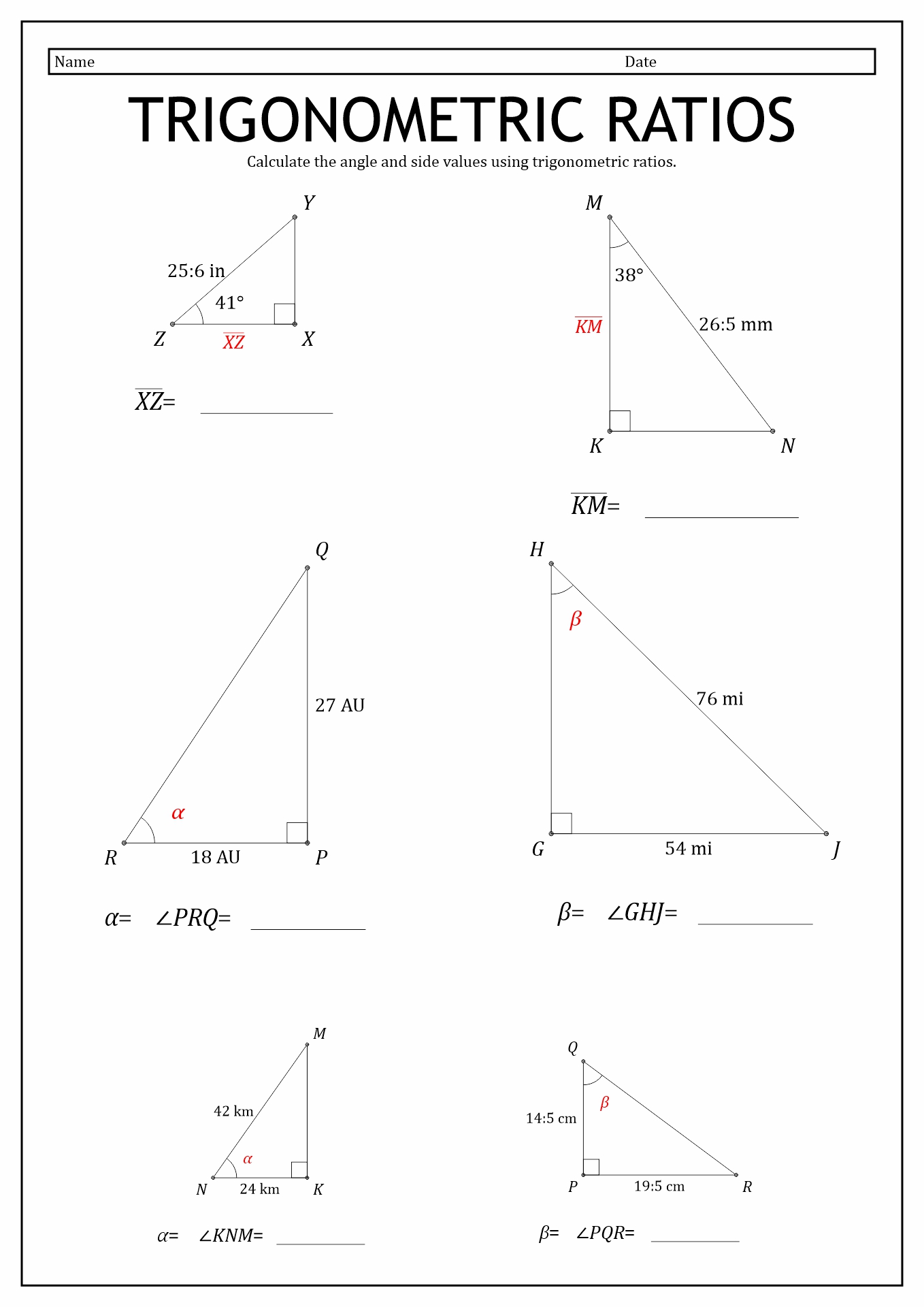 - Primary Trig Ratios Worksheets