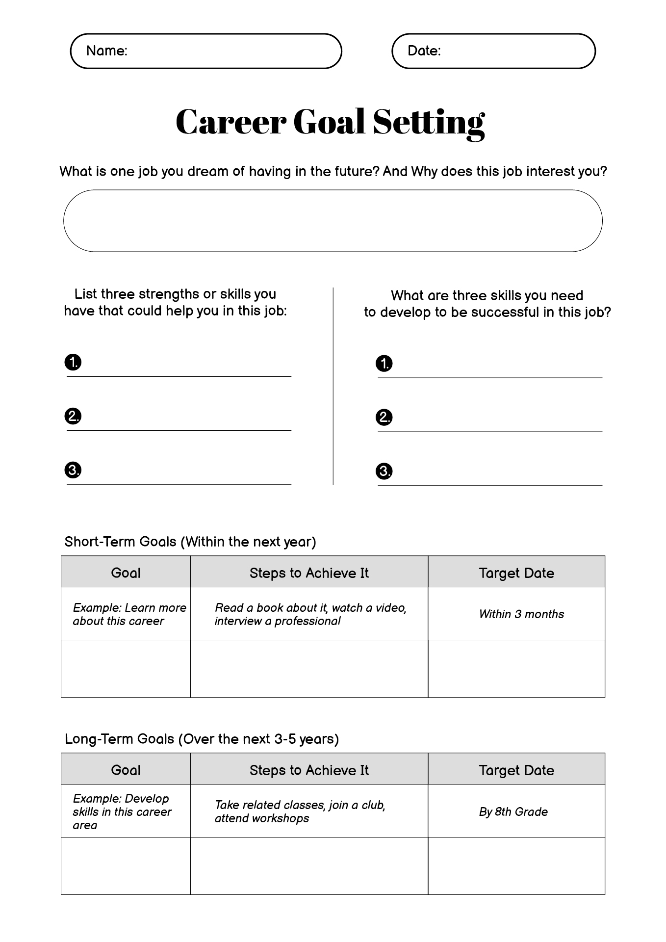 Middle school is a crucial time for career exploration and development, and finding the right resources to support this journey can be challenging. That's why we've created a collection of carefully curated worksheets that target this specific age group and their career interests. Our worksheets cover a variety of subjects, from identifying personal strengths and interests to exploring different career paths. With clear instructions and engaging activities, our worksheets are designed to empower middle school students and help them gain a deeper understanding of themselves and the world of work.
